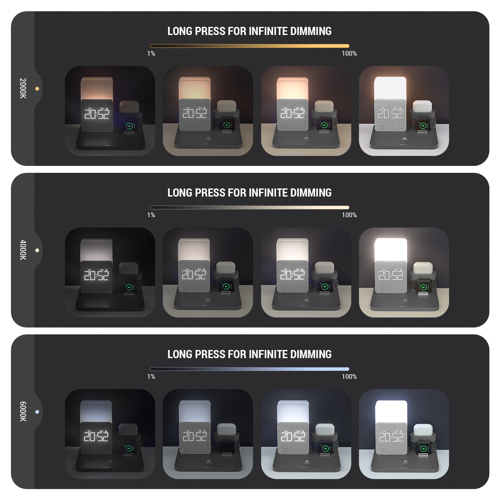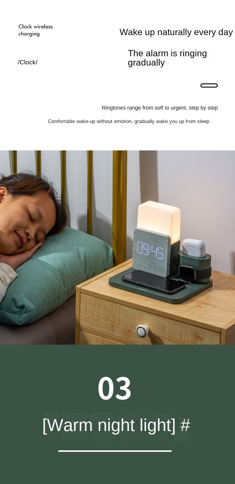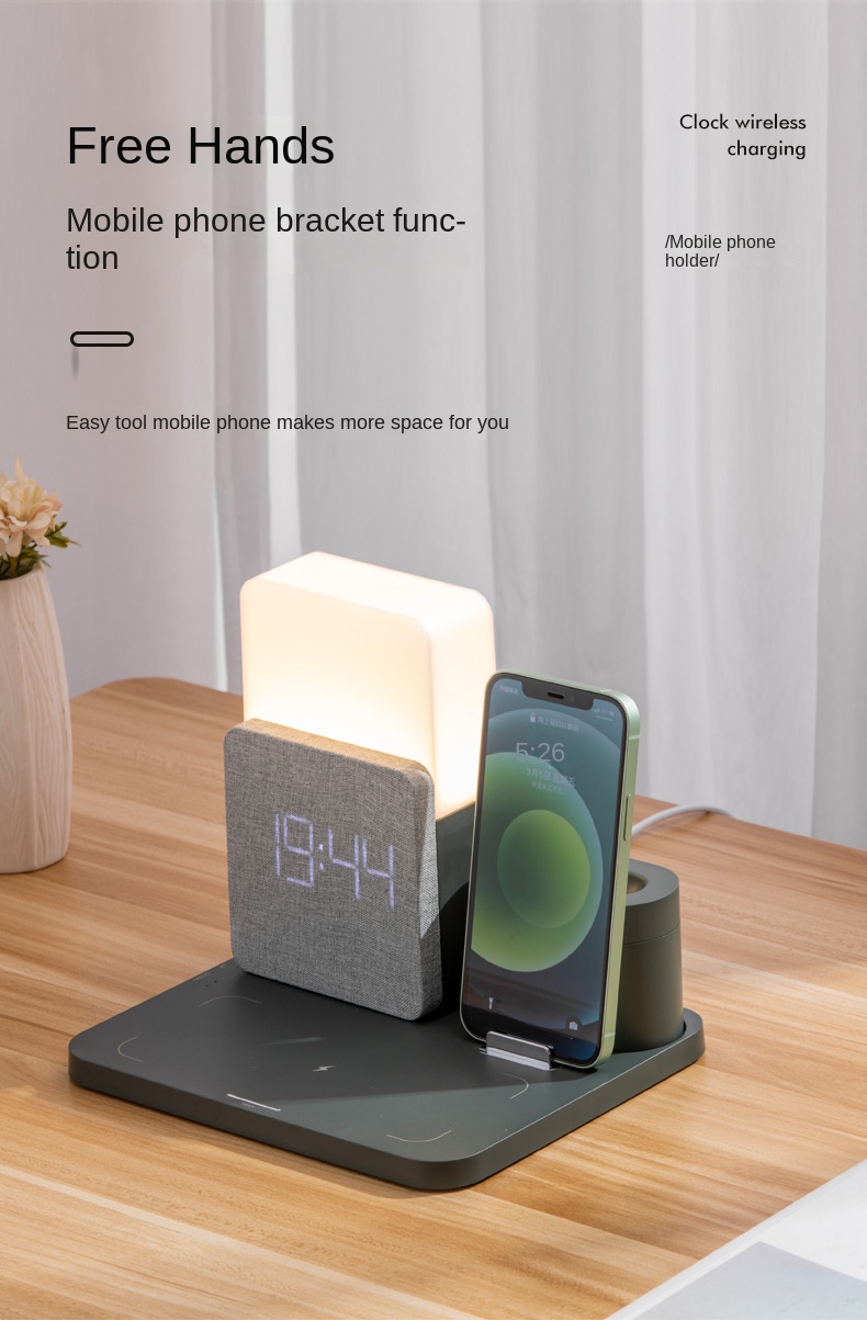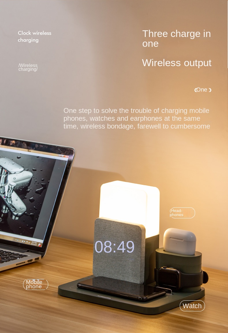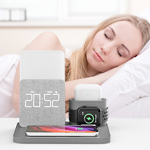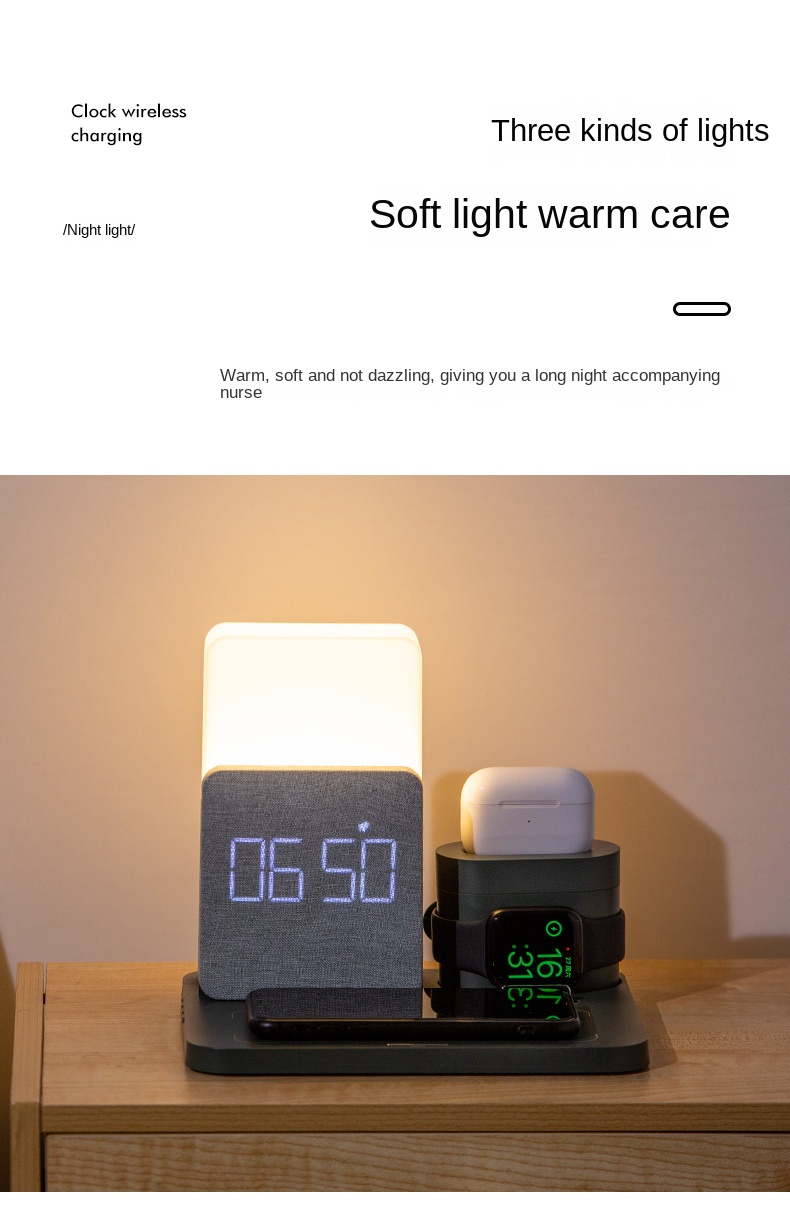 Беспроводное зарядное устройство 3 в 1 Станция быстрой зарядки Цифровой будильник Ночник Совместимость с IPhone 13 Iwatch/AirPods iPhone 14