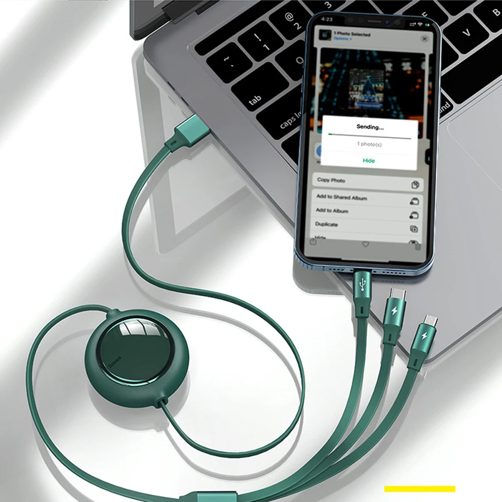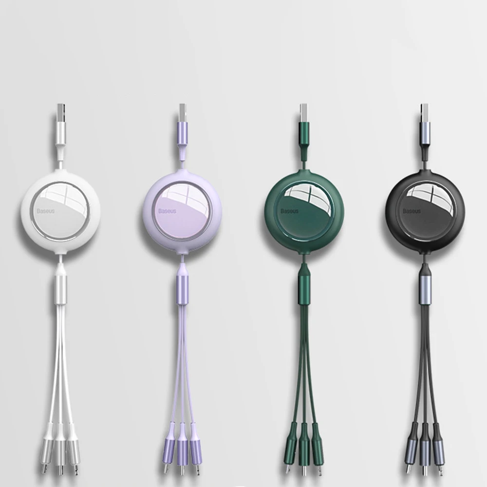 Baseus 100 Вт 3 в 1 Usb C Kabel Voor Iphone 13 12 быстрое зарядное устройство Mobiele Telefoon Kabel Intrekbare Data koord Voor Huawei Micro Usb Kabel