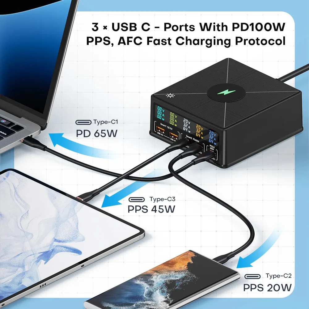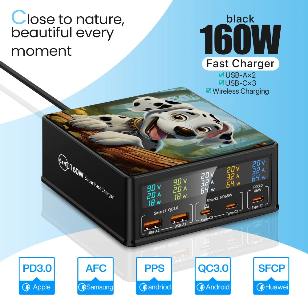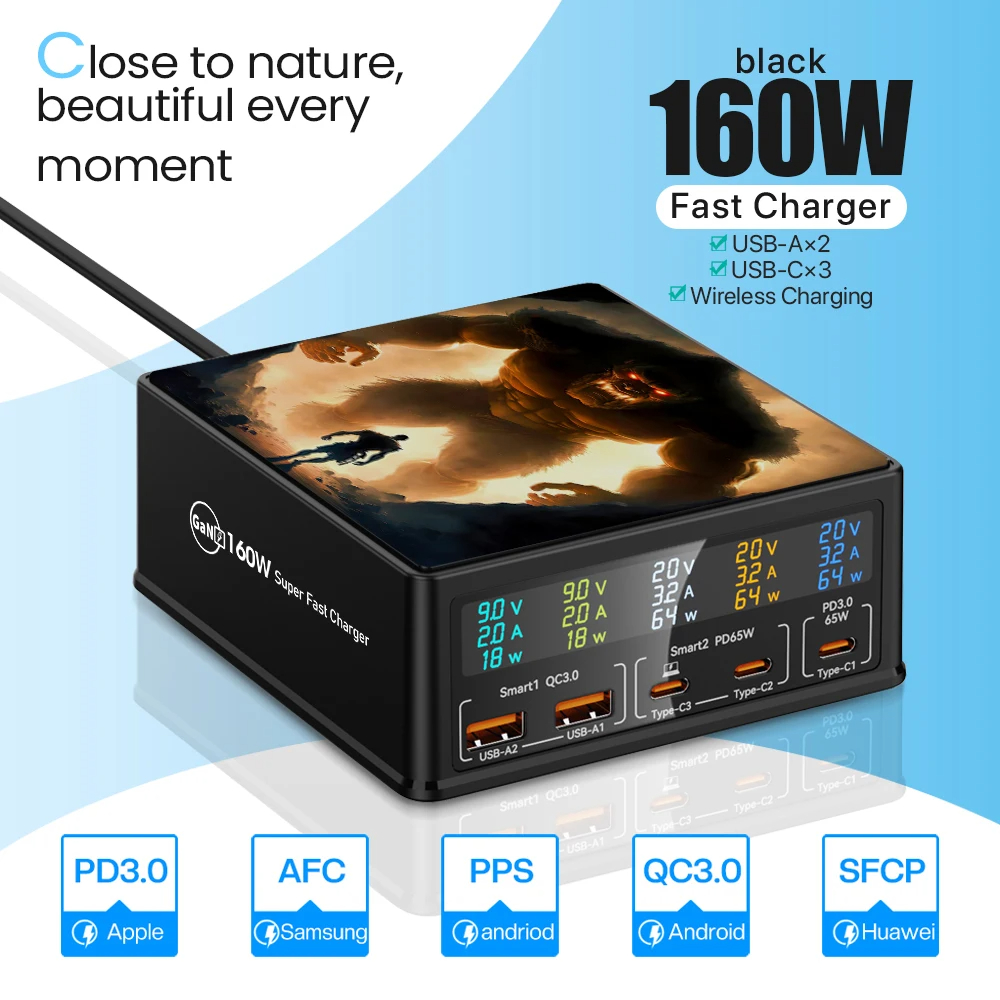 Беспроводное зарядное устройство PSDA 3D 160 Вт USB C GaN QC3.0 PD3.0 65 Вт USB Type C