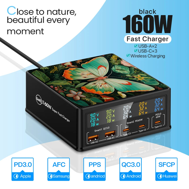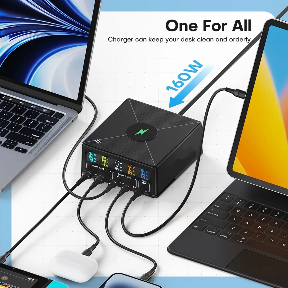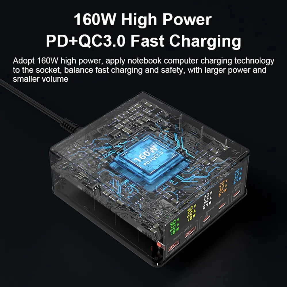 6 в 1 160 Вт Быстрая зарядка PD + QC3.0