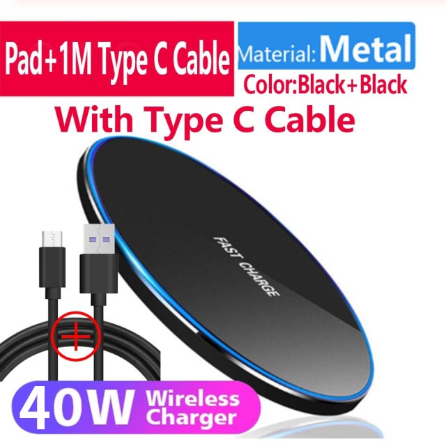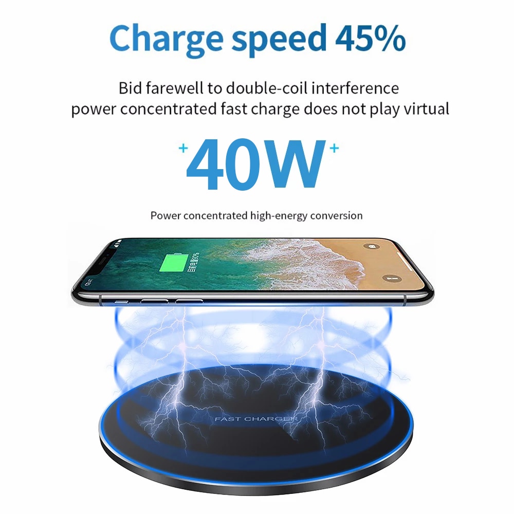 Беспроводное зарядное устройство Qi 40 Вт для iPhone 15 14 13 X XR XS Max 8, для Samsung S10 S20 Note10 20 Xiaomi Huawei Phone