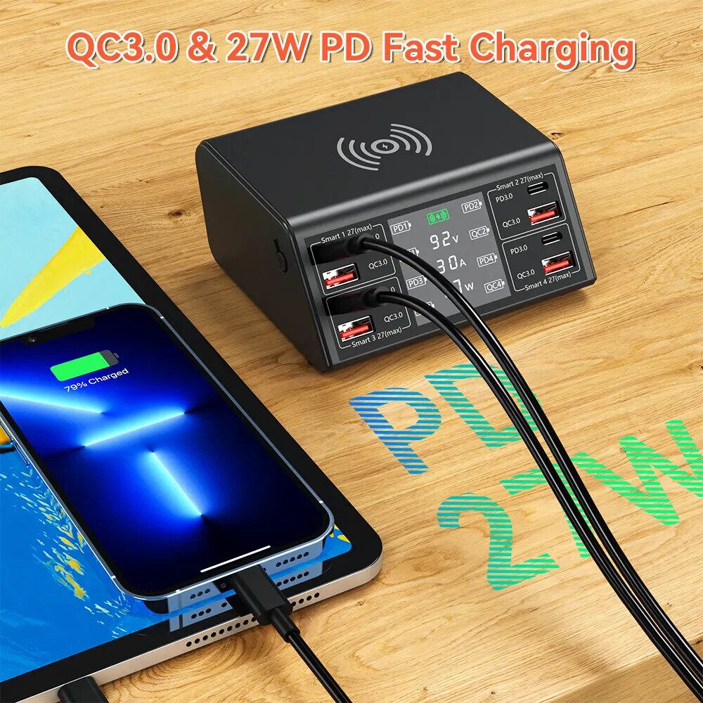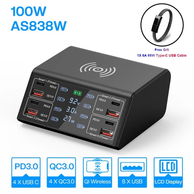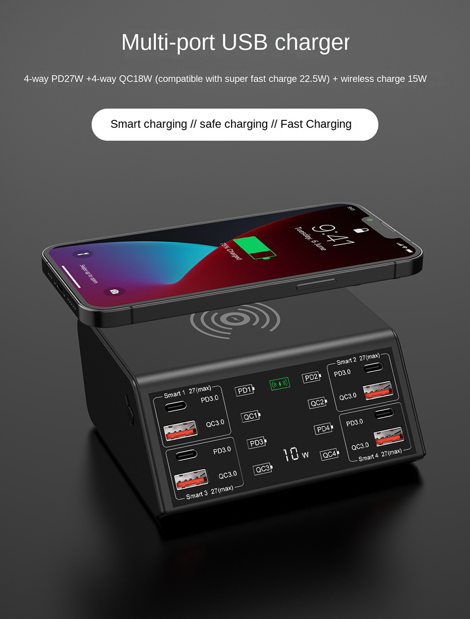Беспроводное зарядное устройство с 8 USB-портами, 100 Вт