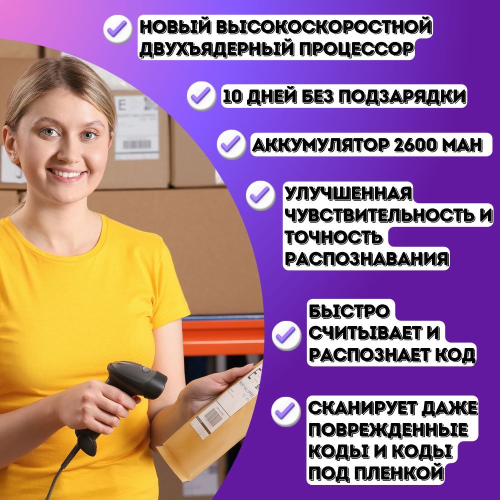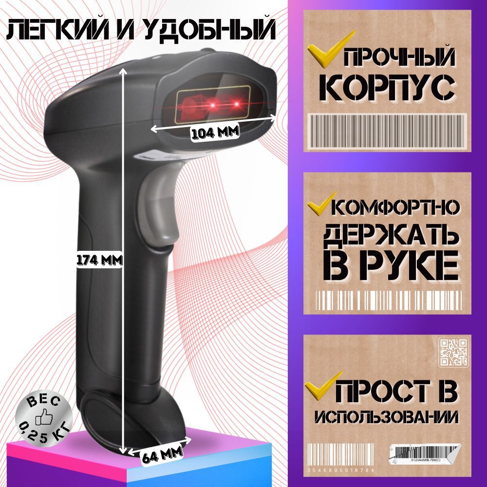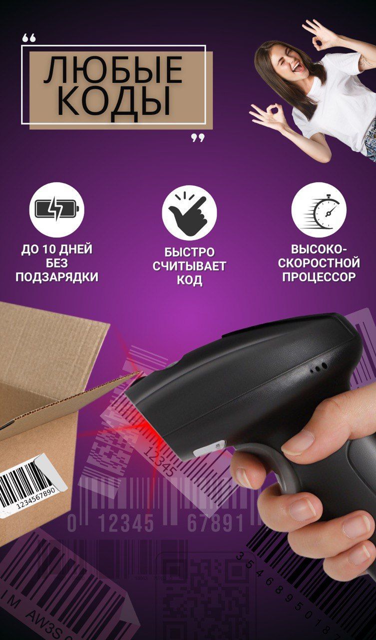 Беспроводной 2D сканер штрихкода для маркировки / ПВЗ, ЕГАИС, Честный знак, QR, Эвотор, Атол, Меркурий.