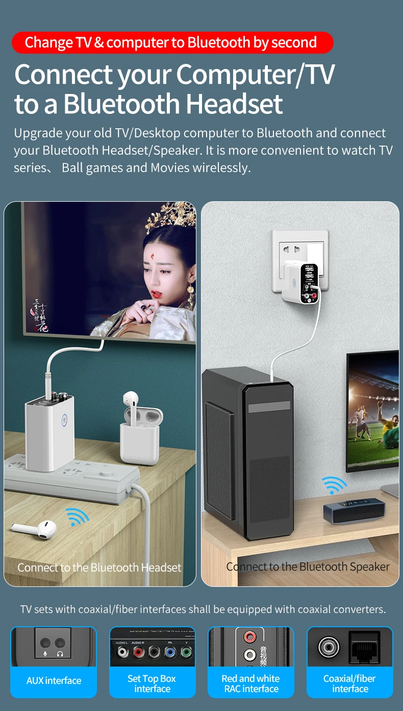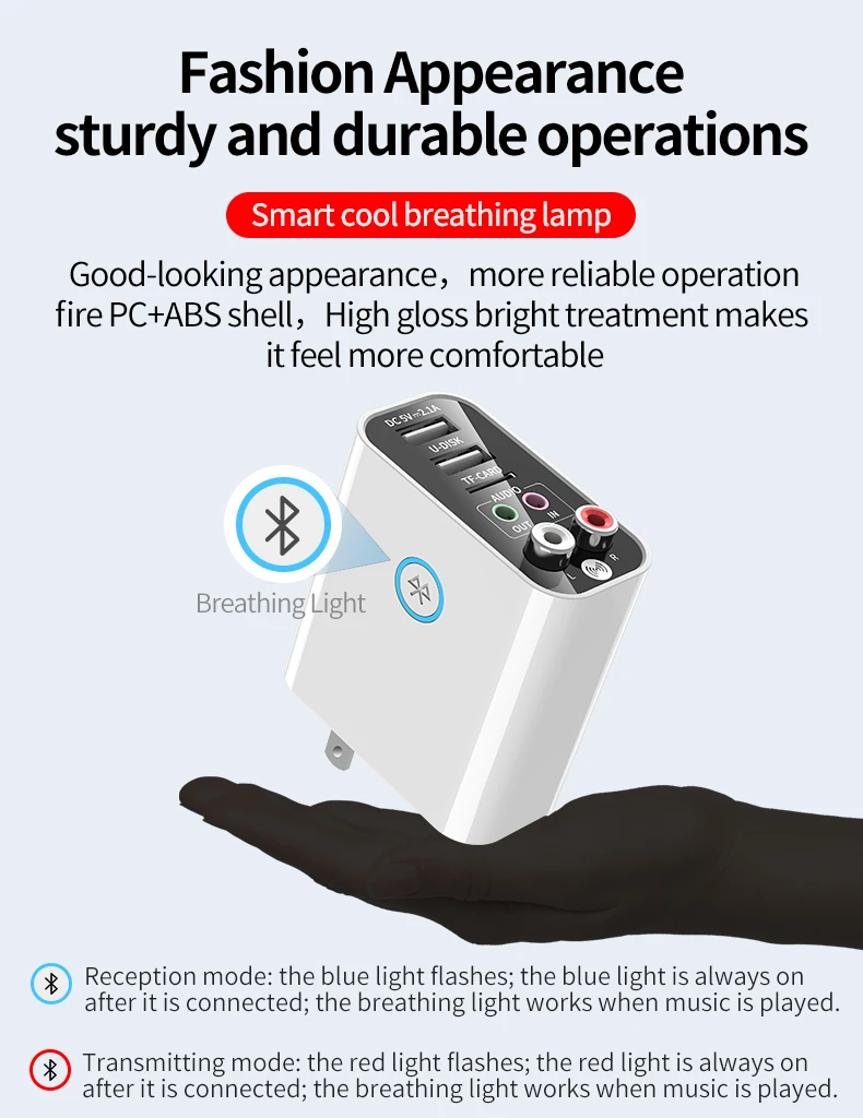 The bluetooth audio transmitter receiver support 110-220V input, and can be used almost worldwide.