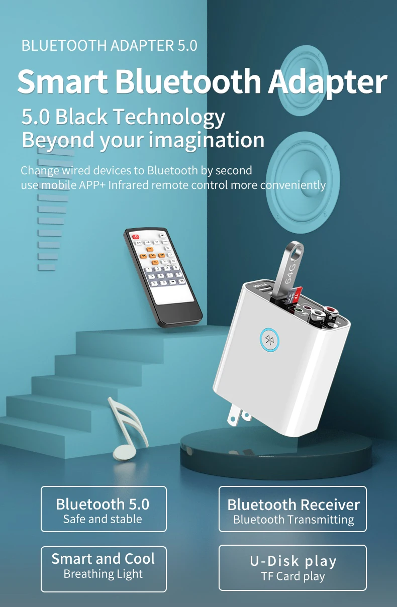 Беспроводной адаптер Bluetooth 5,0 приемник передатчик TF/U диск Play QC2.0 Зарядка для наушников ТВ ИК управление через приложение