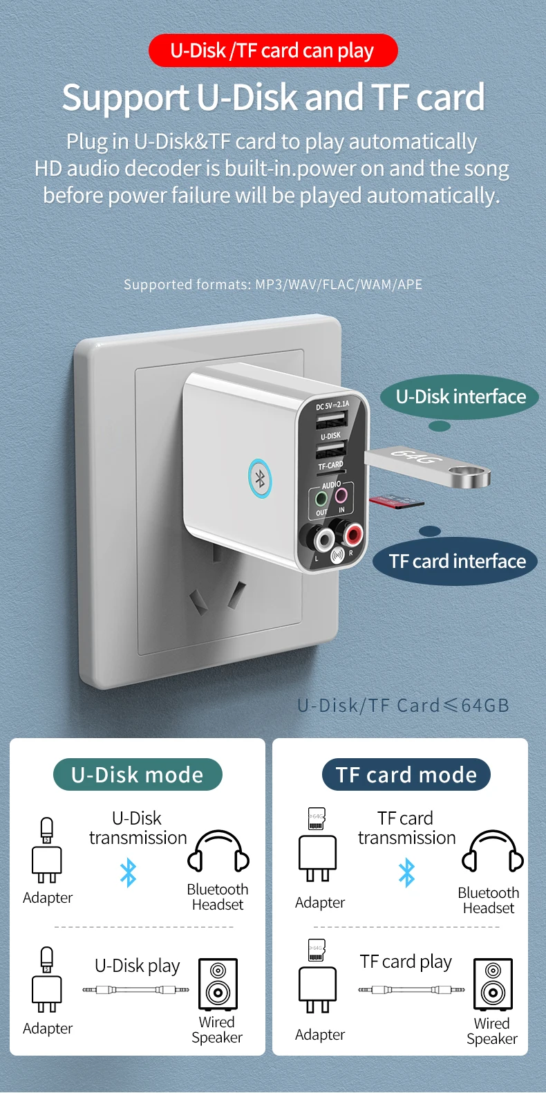 3. Can read TF card/U disk, support mp3/flac/wav/wam/ape format songs;