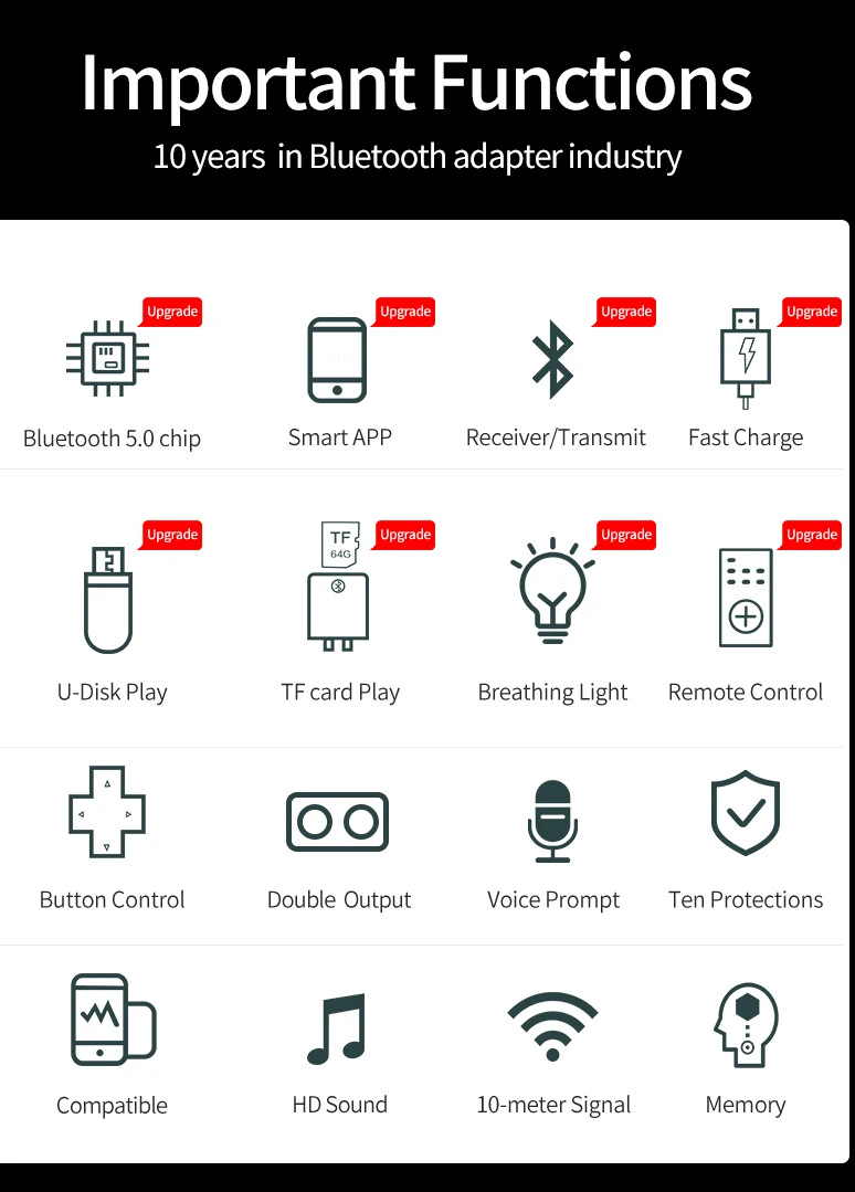 9. Bluetooth transmission distance is 10 meters, built-in HD decoding chip;