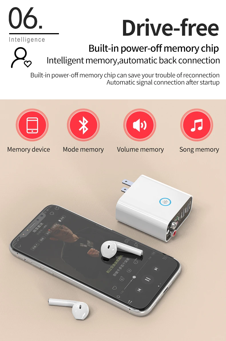 The bluetooth transmitter receiver adopts bluetooth 5.0 chip that can provide a stable and fast connection.
