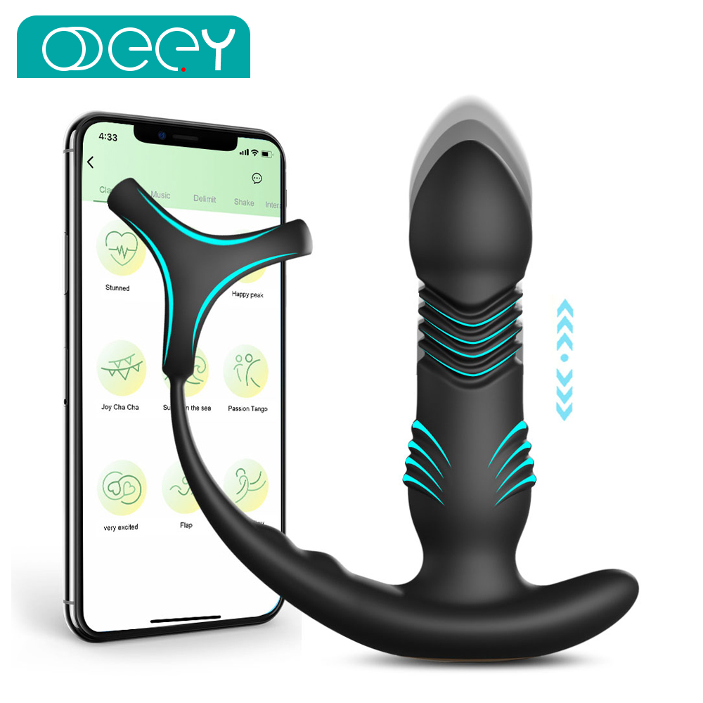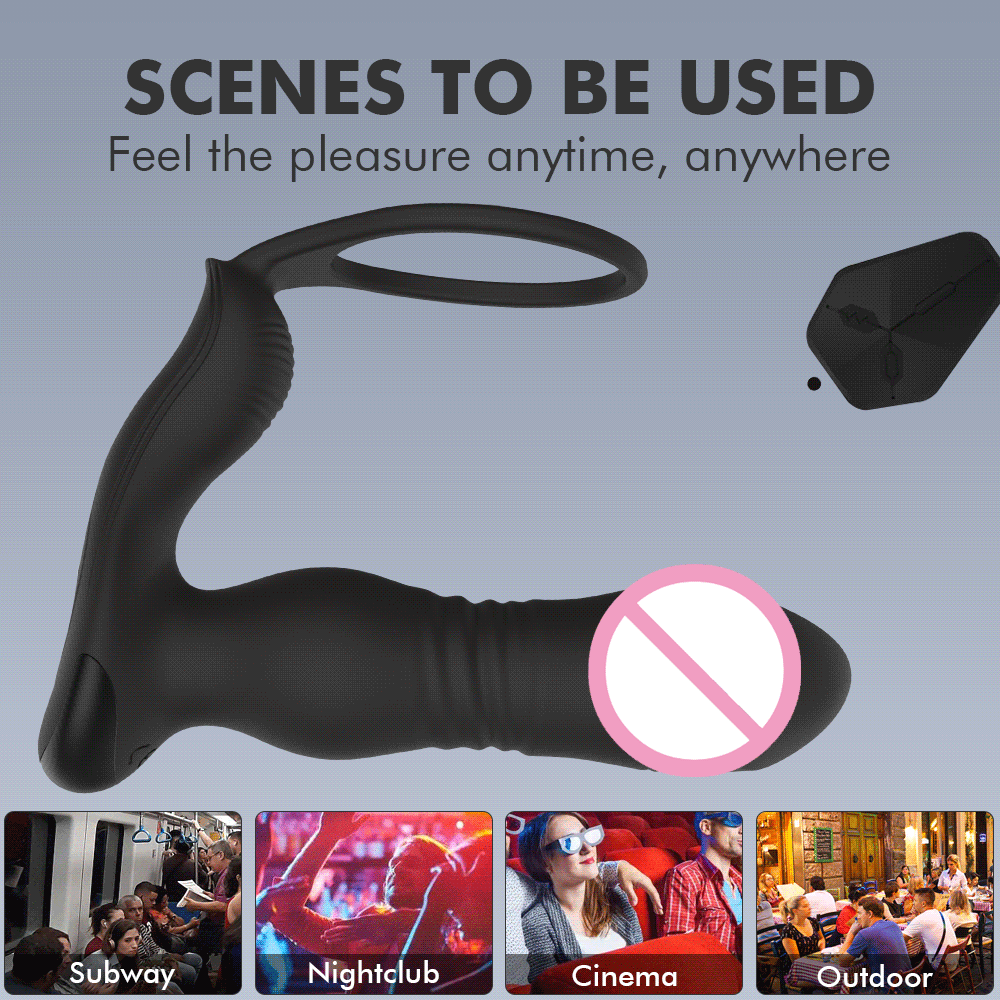 Беспроводной дистанционный толкающий Анальный вибратор с кольцом для пениса вибрирующий Телескопический массажер простаты Анальная пробка фаллоимитаторы секс-игрушки для мужчин