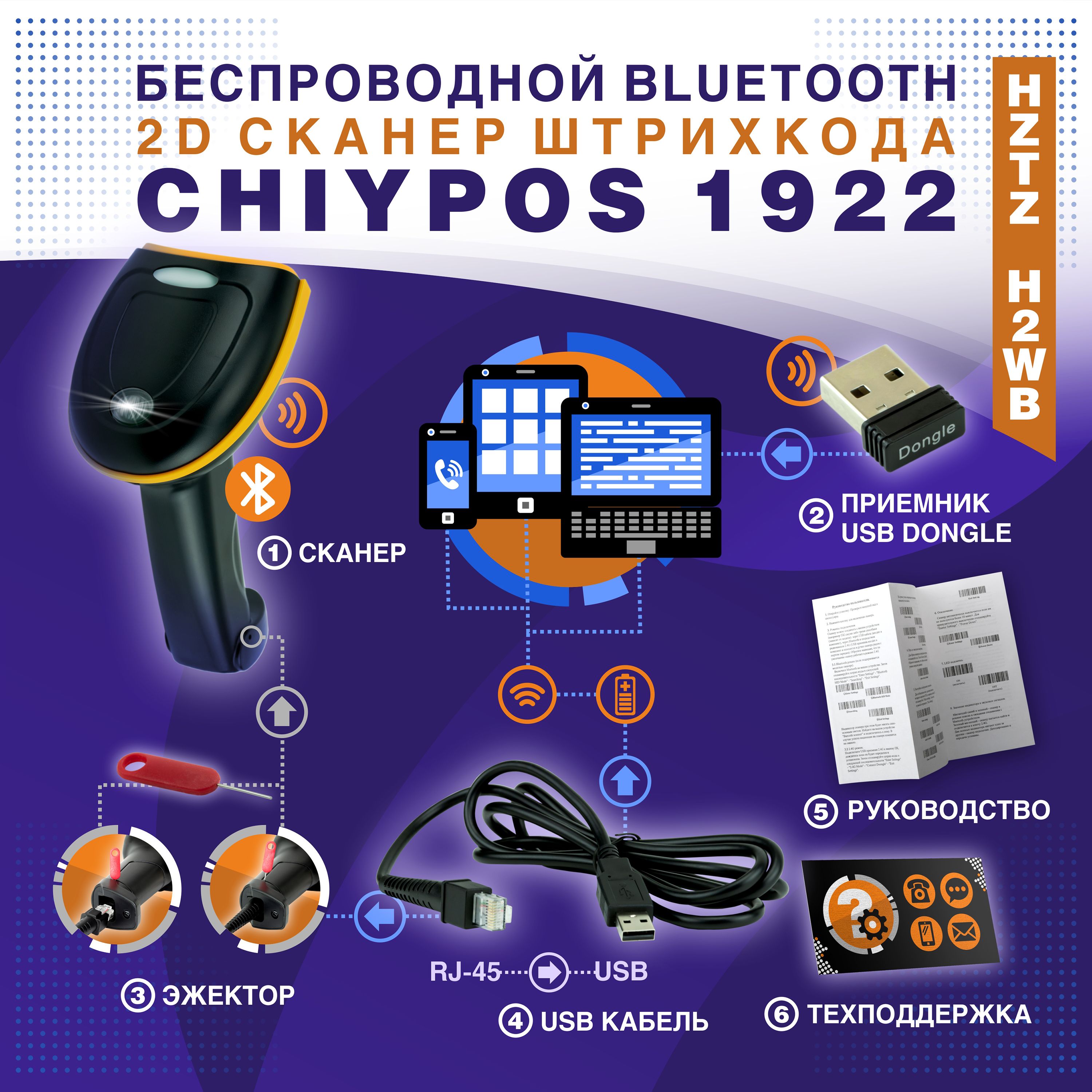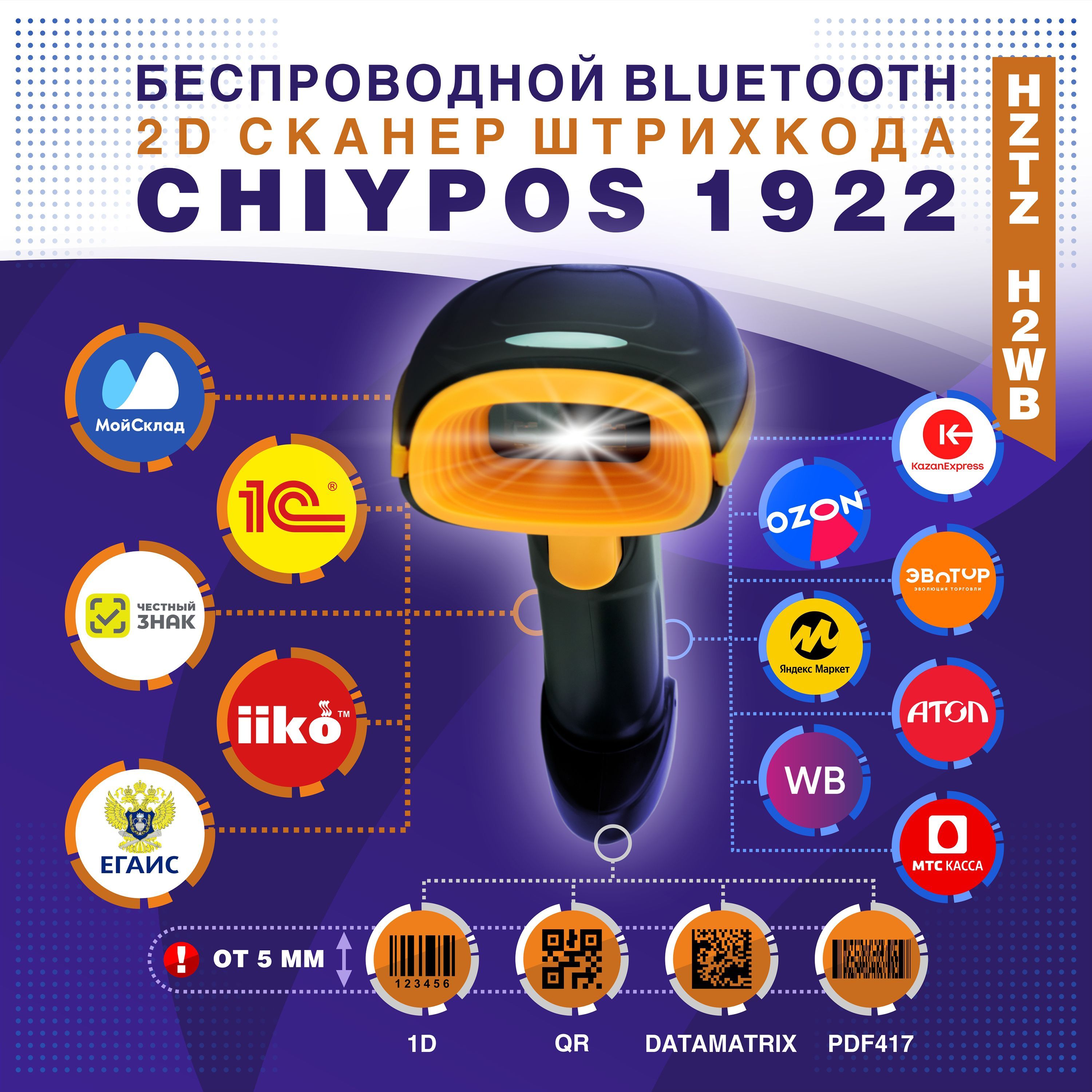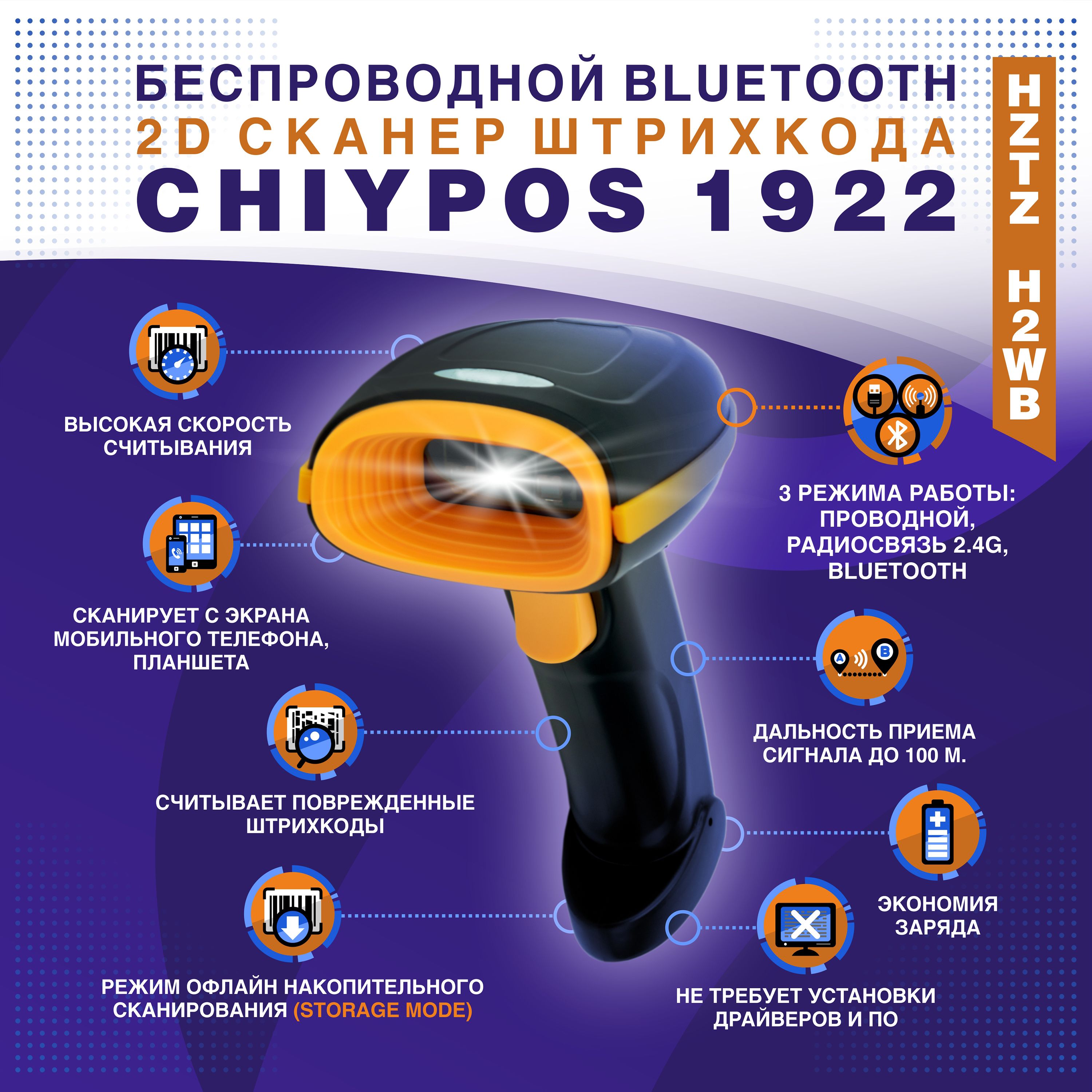 Беспроводной Bluetooth 2D сканер штрихкода СHIYPOS 1922 / HZTZ H2WB USB для маркировки, ПВЗ, ЕГАИС, Честный знак, QR, Эвотор, Атол, 1D (русская инструкция)