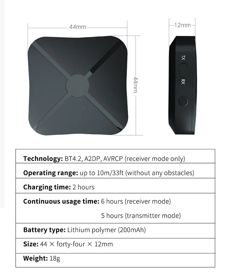 • 2 в 1 стерео аудио приемник конвертер :Этот продукт можно использовать как передатчик, так и приемник, что делает его универсальным и удобным для ваших аудио нужд.