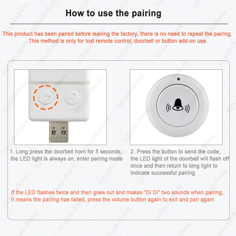 5. Меры предосторожности: в средах с высоким уровнем помех в беспроводной сети расстояние передачи приемника беспроводного дверного звонка может быть уменьшено. Если музыка не звучит, проверьте, не отключена ли проводка звукового сигнала.