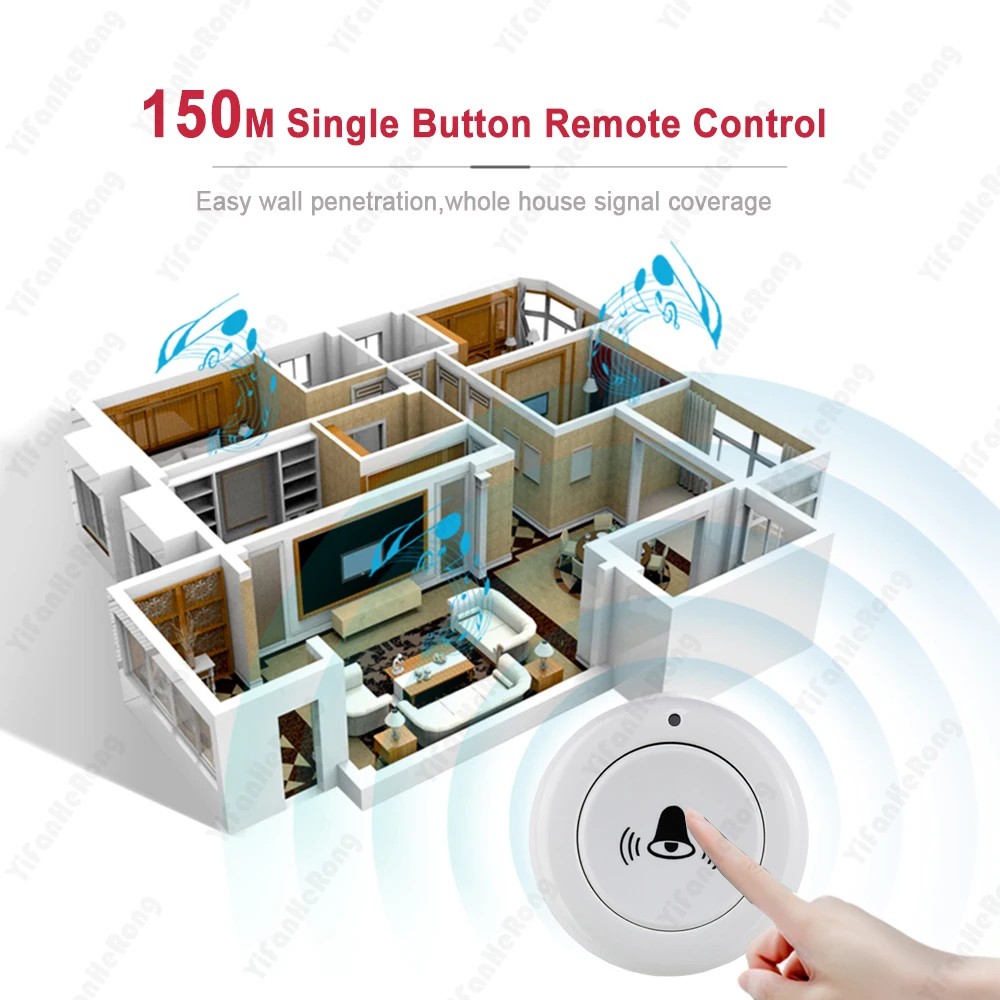 Беспроводной дверной звонок, 30 музыки, 150 м, водонепроницаемый пульт дистанционного управления, USB умный дверной звонок, приемник, пульт дистанционного управления одной кнопкой