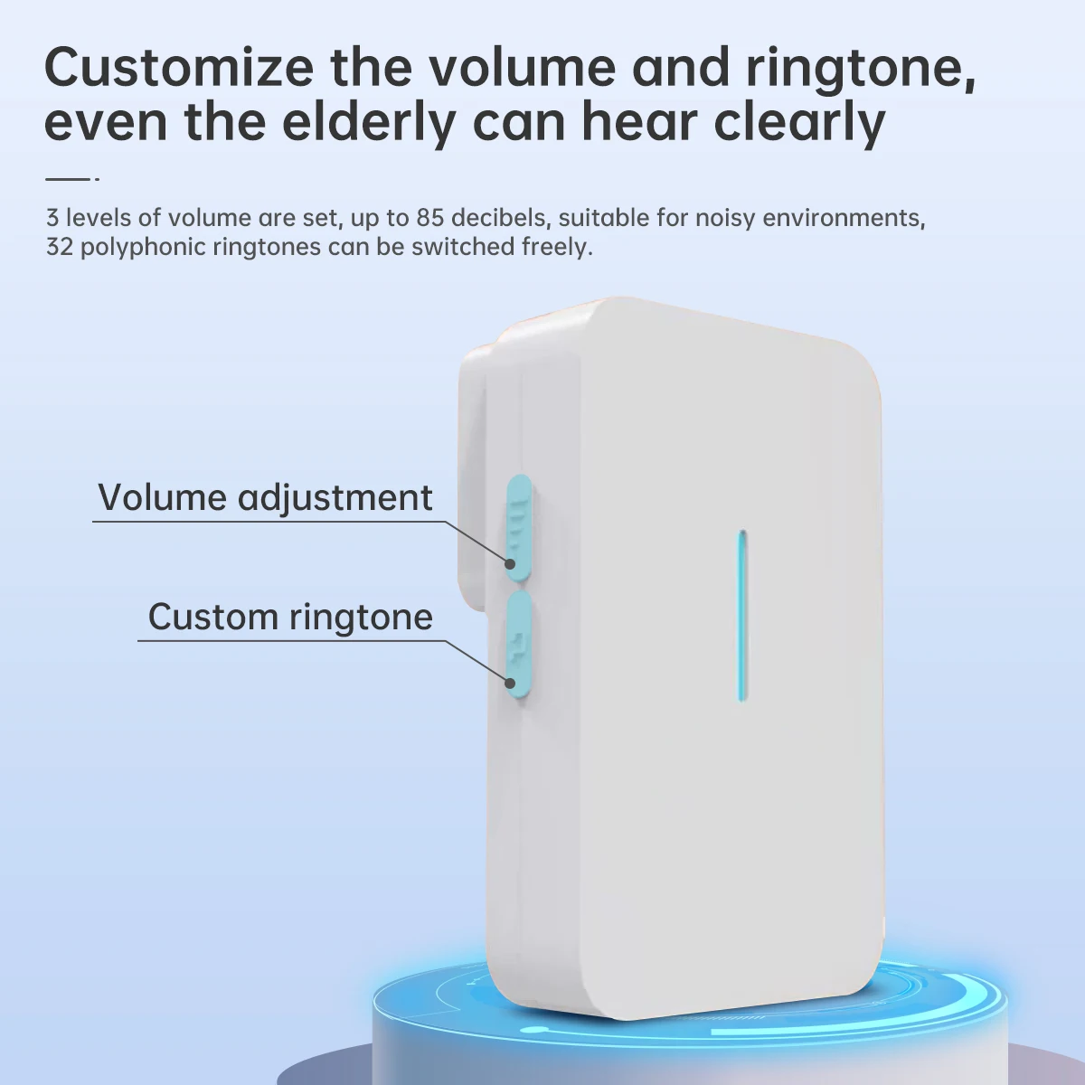 • 32 мелодии звонка на выбор и 3-ступенчатая Регулировка громкости (0 ~ 85 дБ)