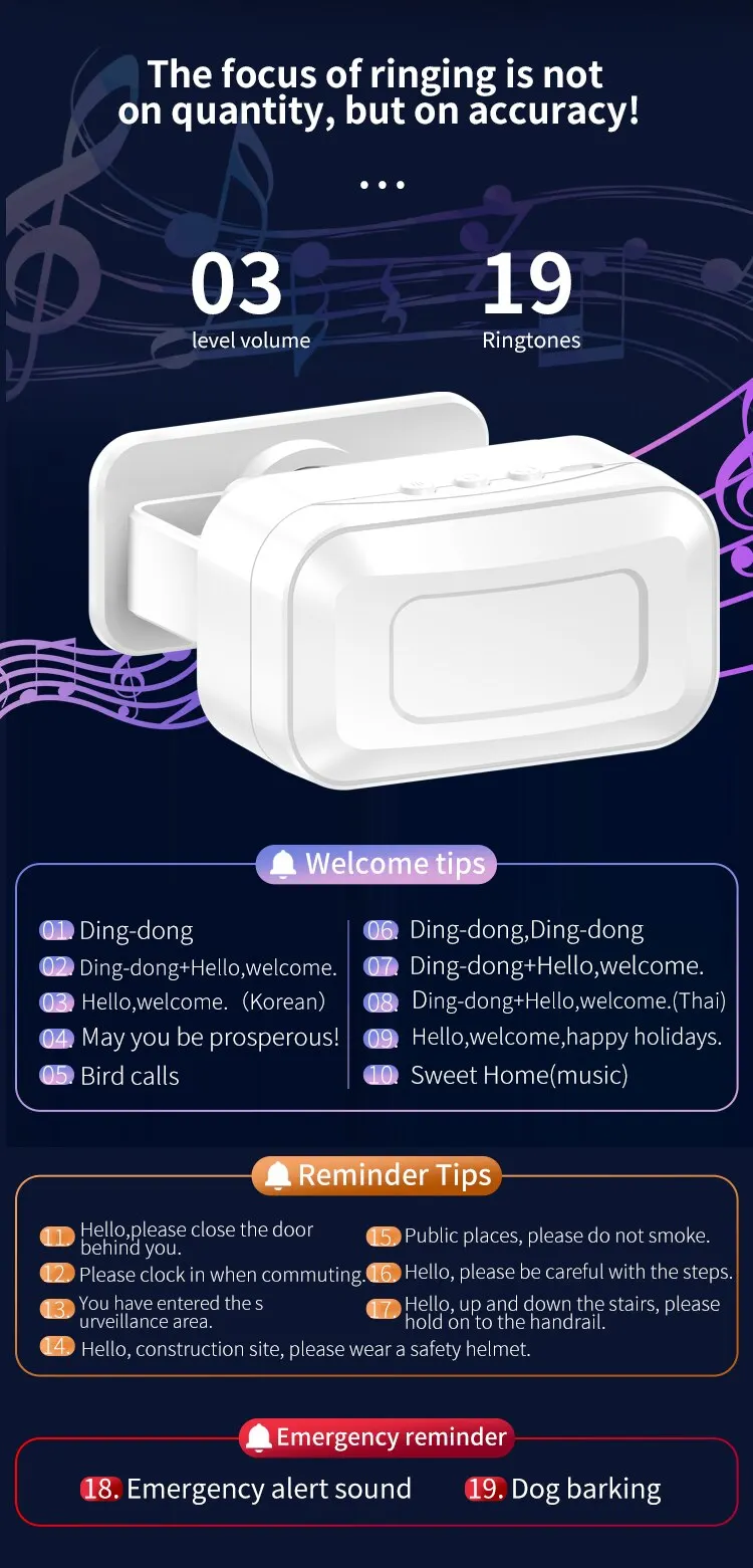Приветственный звонок в сочетании с обнаружением движения, предупреждением 90 дБ и мигающим красным светом, дальностью обнаружения 2-7 метров на открытой местности, этот автономный, все-в-одном сигнал тревоги играет важную роль в информировании вас о злоумышленник или посетитель. Сигнализация датчика звукового сигнала движения PIR подходит для магазина, офиса, дома, бизнеса и т. д. Чтобы предупредить вас, когда он обнаруживает движение, удобное управление и простая установка, удобная домашняя сигнализация.