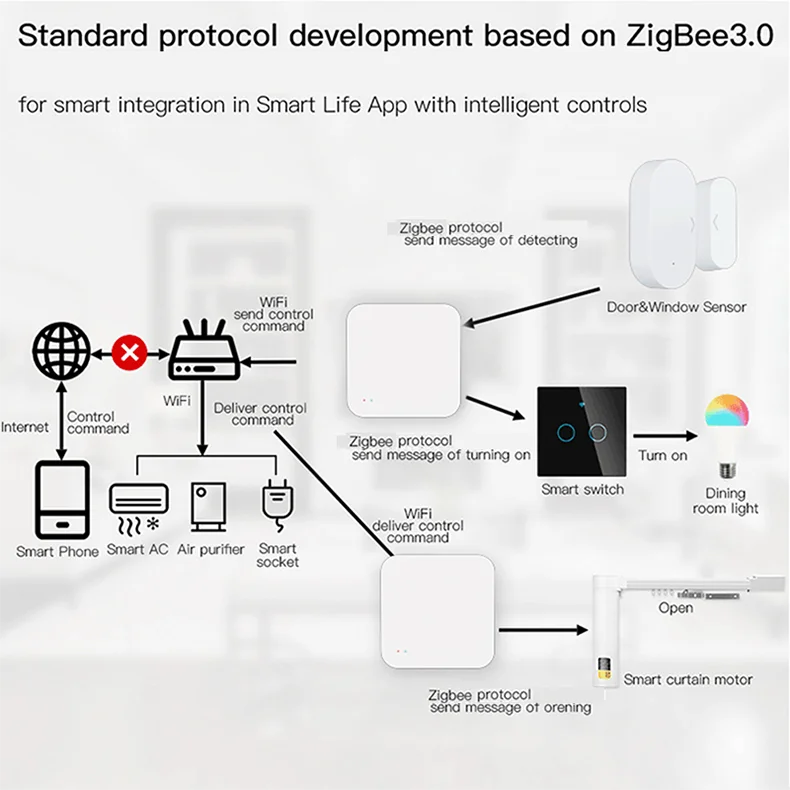 1. Zigbee Hub адаптируется только к устройствам решения Tuya. Он поддерживает приложение: Smart Life и Tuya Smart. Он не поддерживает другие решения продуктов ZIGBEE, такие как XiaoMI.