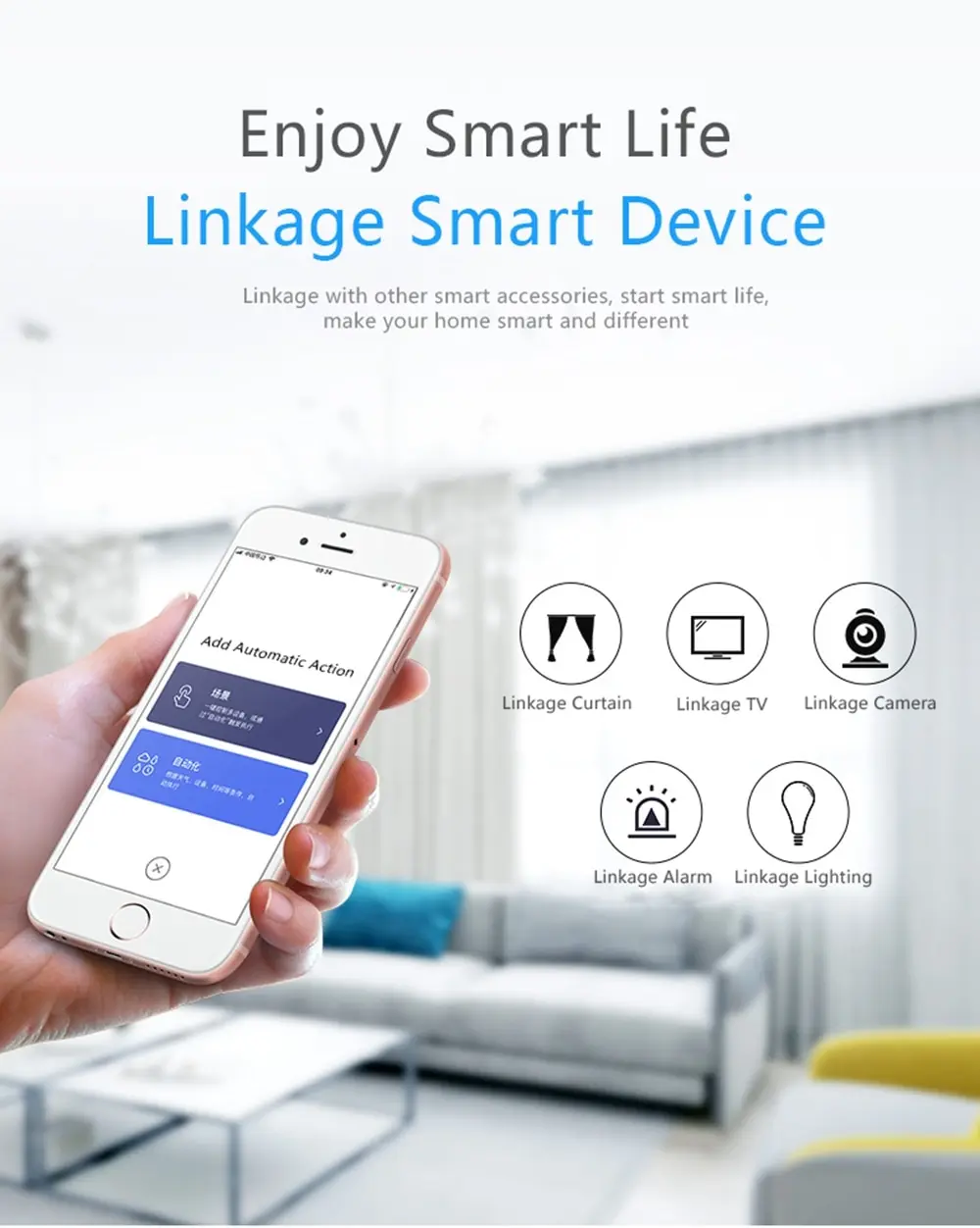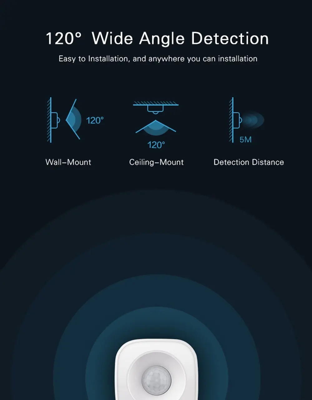 【Пульт дистанционного управления】 Простое загрузите приложение «Smart Life/Tuya Smart» в App Store или Google Play, добавьте устройство для обнаружения движения человеческого тела. Домашняя безопасность в ваших руках все время.