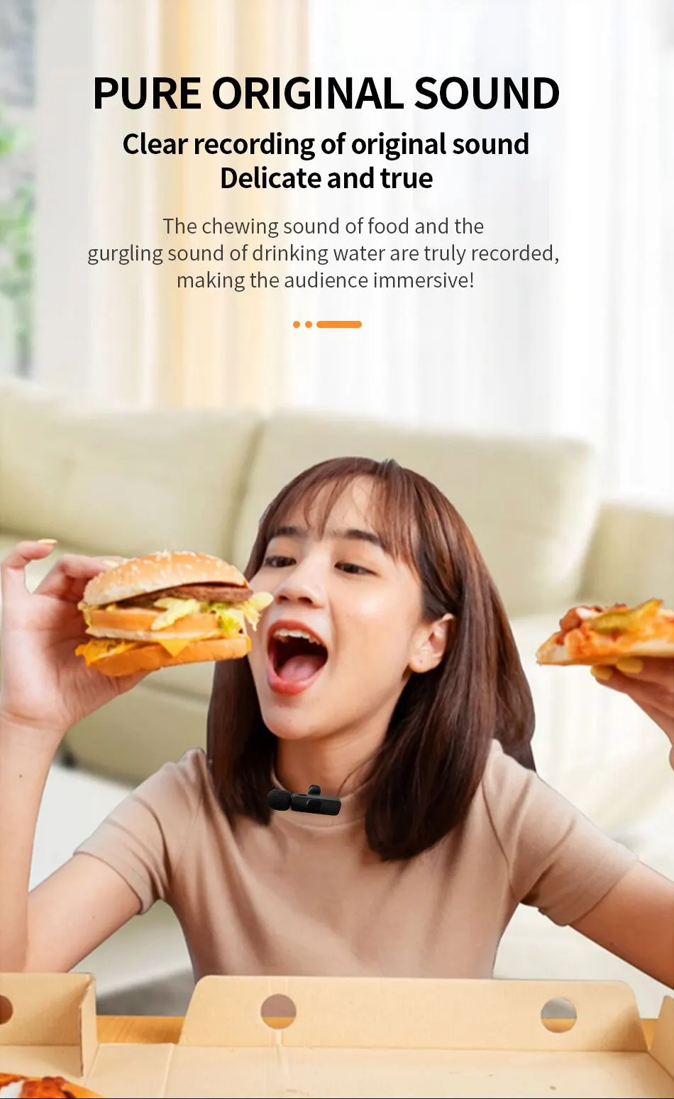 • Петличный микрофон :Дизайн петличный микрофон с лацканами обеспечивает простую и незаметную запись, что делает его идеальным для видеоблогеров и создателей контента.