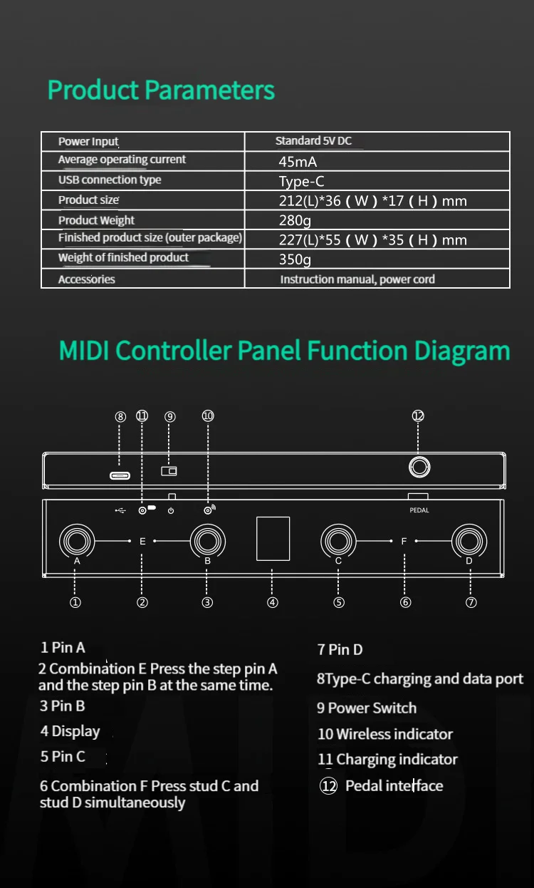 Сверхнизкая задержка: система MIDI напрямую реализует беспроводной протокол MIDI в прошивке, поэтому время задержки сокращается до 3 миллисекунд, интеллектуально оптимизированный алгоритм подключения.