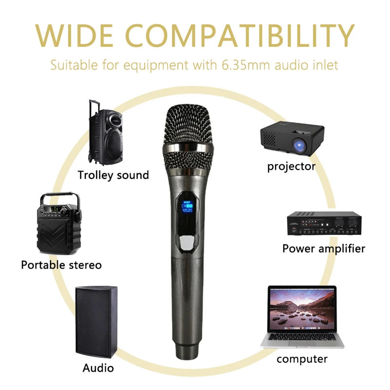 Беспроводной микрофон для караоке, вечевечерние НКИ, дома, встречи, церкви, школы, шоу с перезаряжаемым литиевым аккумулятором и приемником