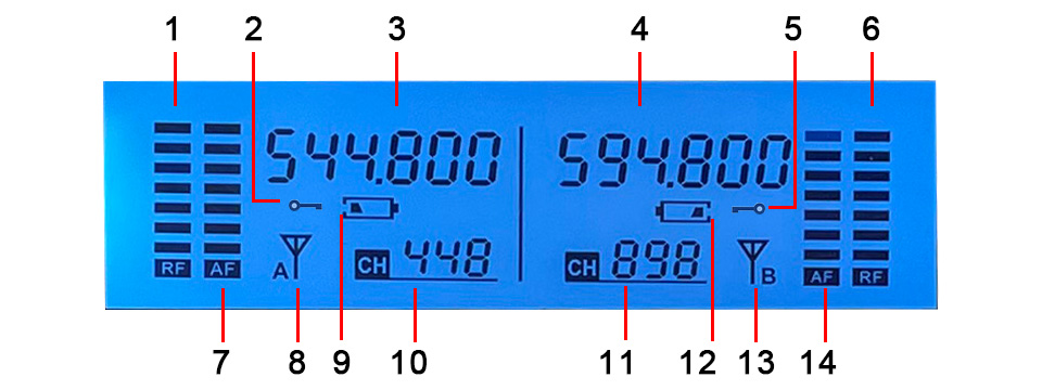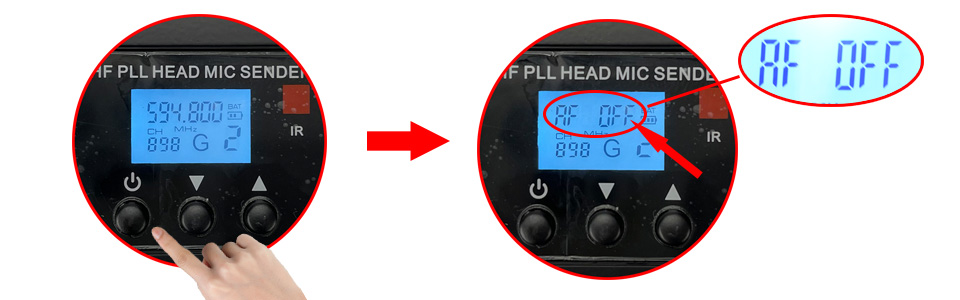 AF Light: когда передатчик улавывает звук, индикатор AF будет гореть.