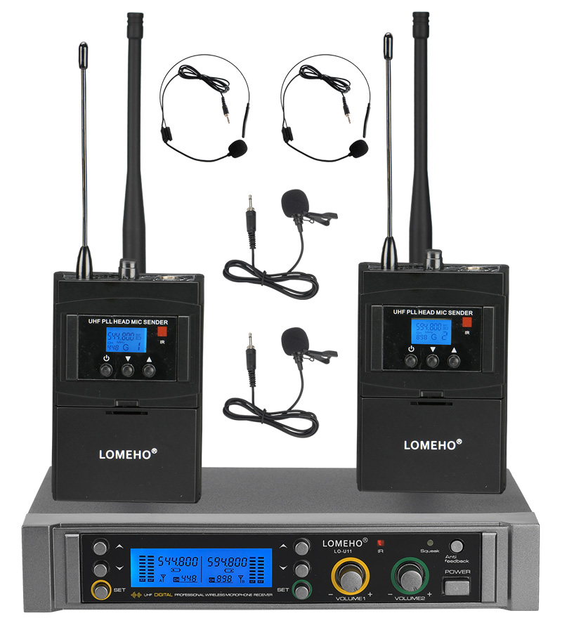 Беспроводной микрофон с регулируемым частотным поясным блоком IR SYNC Mute микрофон с защитой от обратной связи с 2 петличный микрофон 2 микрофона гарнитуры для говорящей школьной церковной сцены.