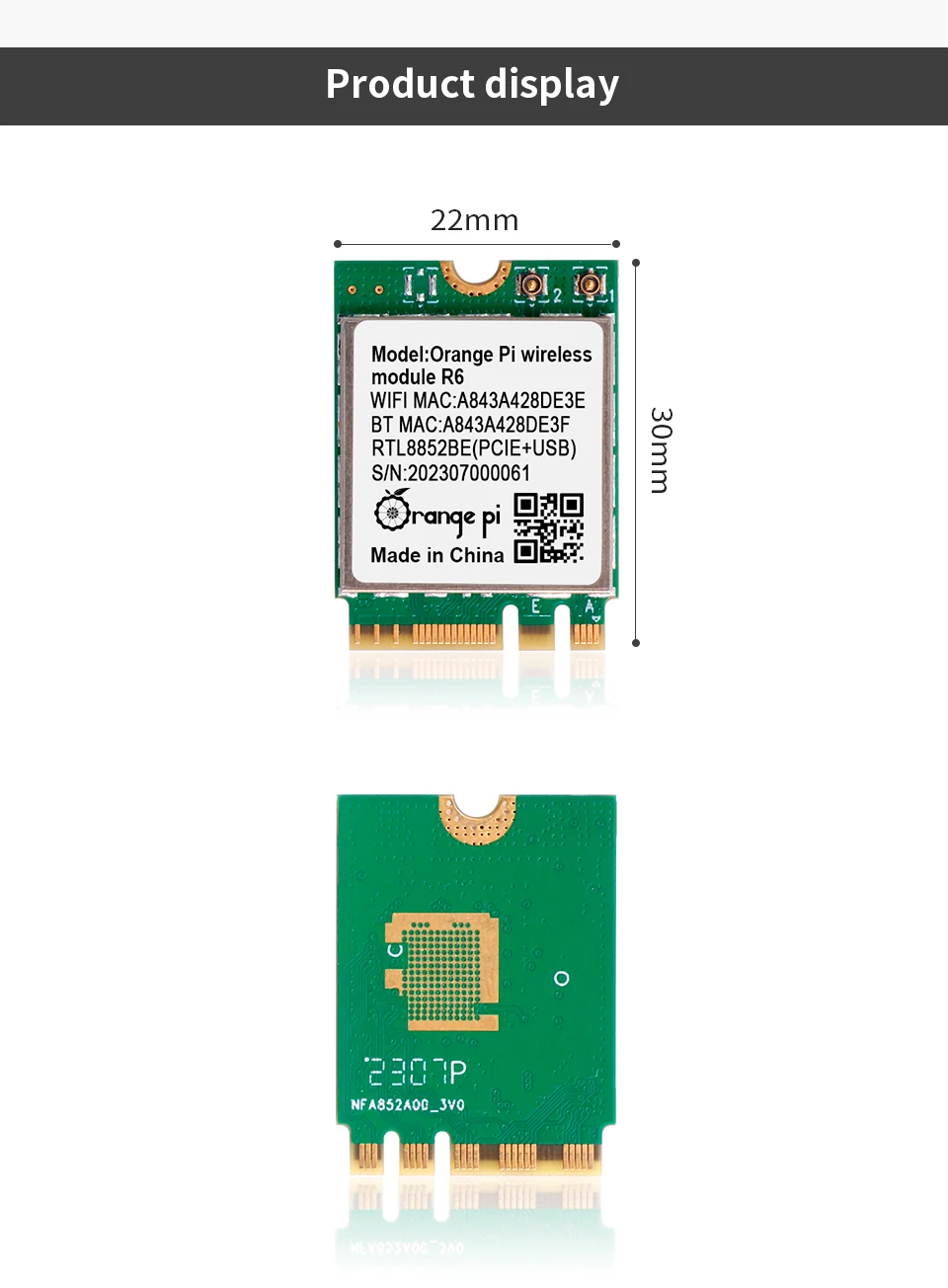 Беспроводной модуль R6 Orange Pi для Orange Pi 5 Plus, плата 2,4G/5G, два диапазона, Φ + BT5.2 с интерфейсом PCIE M.2 E-Key, модуль Wi-Fi
