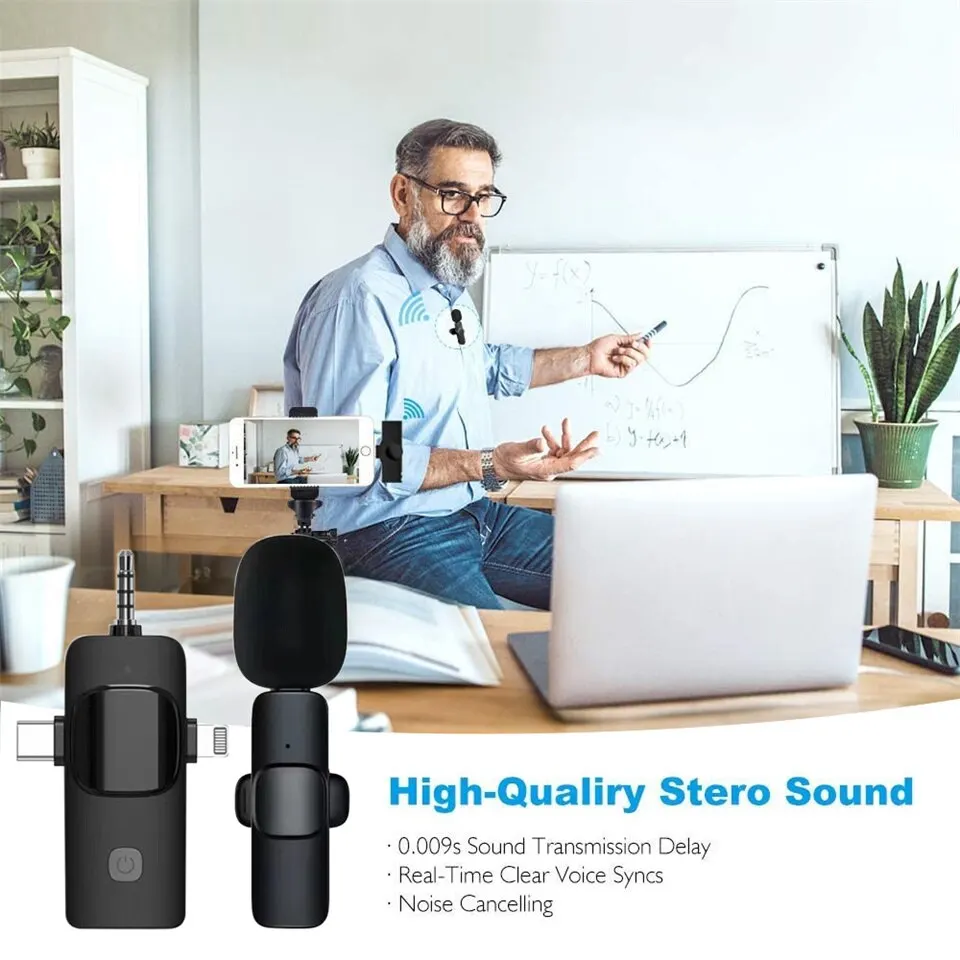 • Беспроводной микрофон 3-в-1:Этот микрофон совместим с iPhone/телефоном Android/камерой/ноутбуком для записи видео, что делает его универсальным инструментом для всех ваших потребностей в записи.