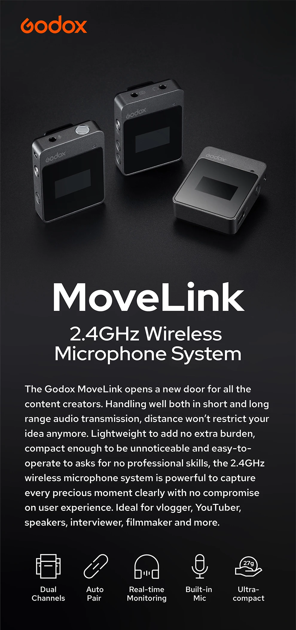 3. Меньше, чем маленькие: Godox MoveLink очень легкий и просто помещается в вашем кармане. Каждый блок имеет размеры 5*4*1,4 см, чтобы вы могли легко держать всю систему в одной руке.