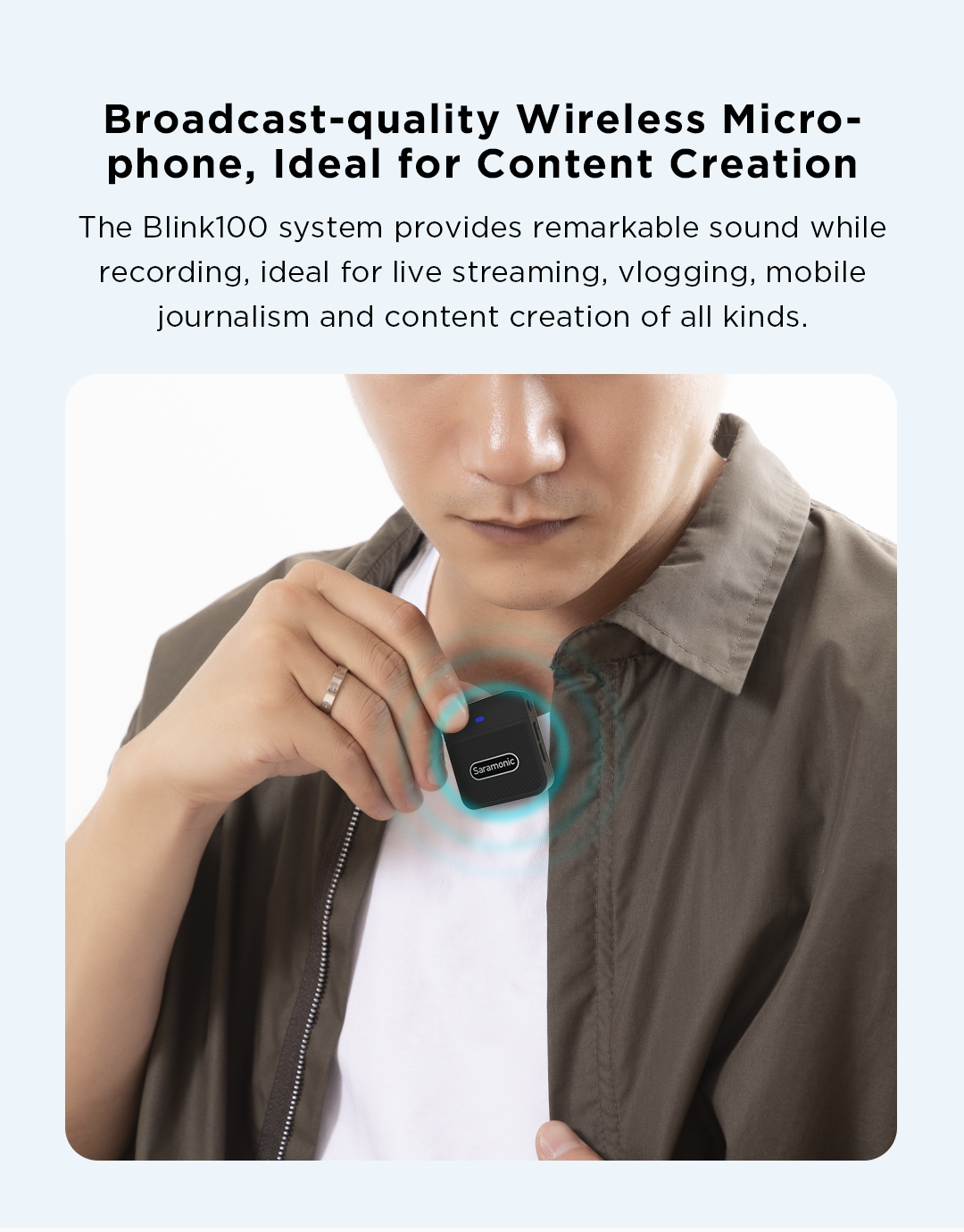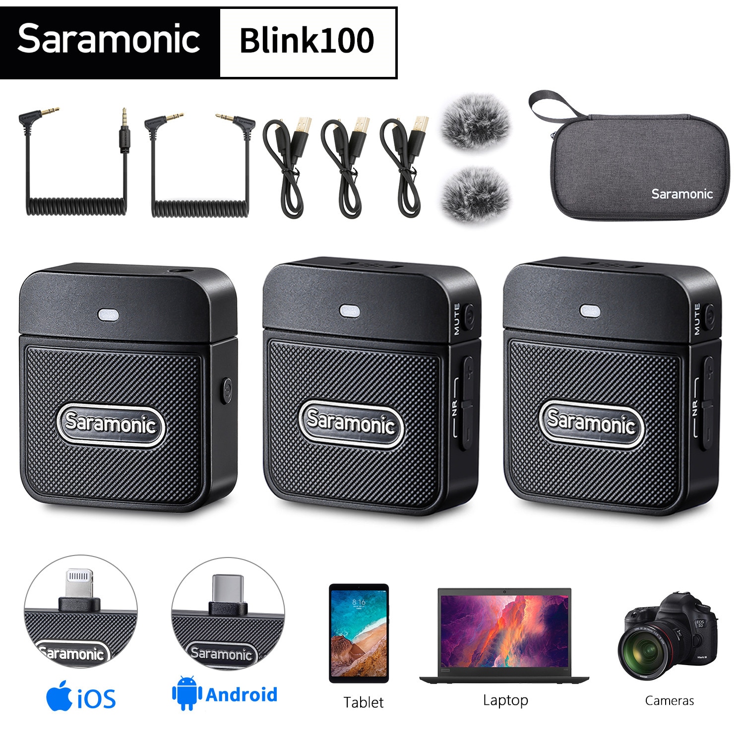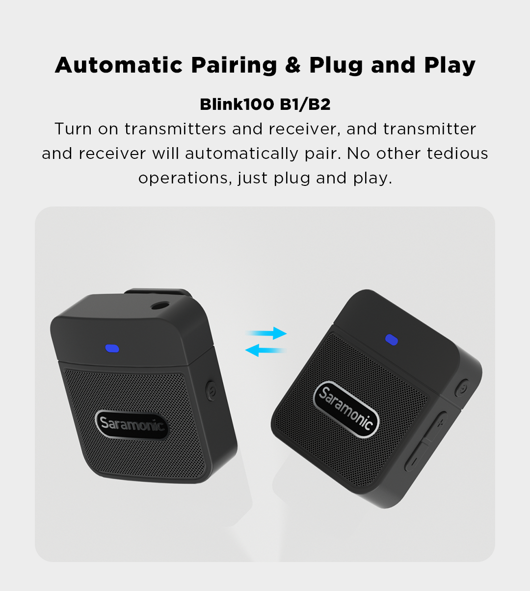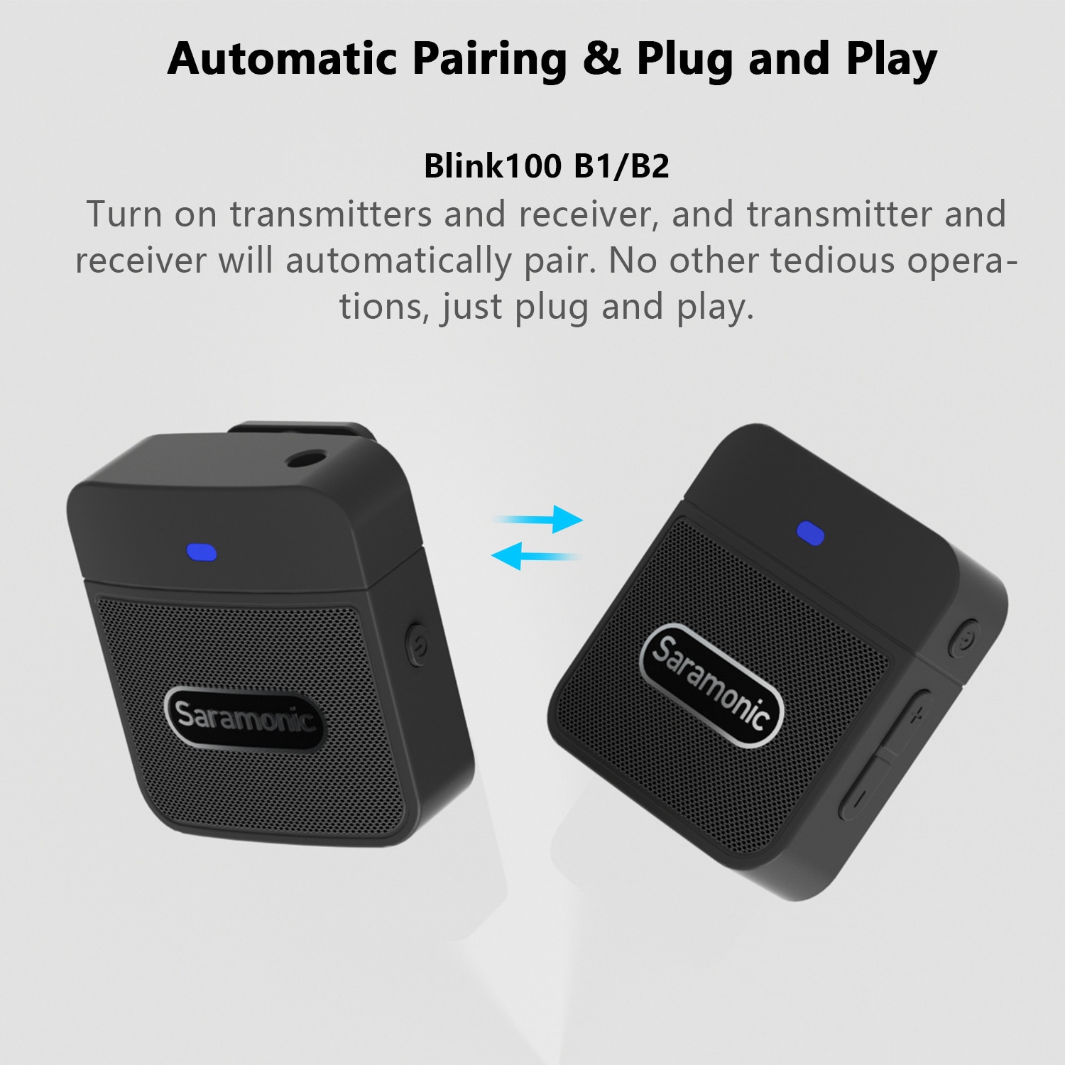 🎙️ Blink100 B2 Два передатчика и один приемник, совместимые со смартфонами, планшетами, цифровыми зеркальными фотокамерами, видеокамерами и т. Д. Система Blink100 отличается автоматическим сопряжением и возможностью выбора шумоподавления, обеспечивая звук вещательного качества, идеально подходящий для прямой трансляции, видеоблогов, мобильной журналистики и многого другого.