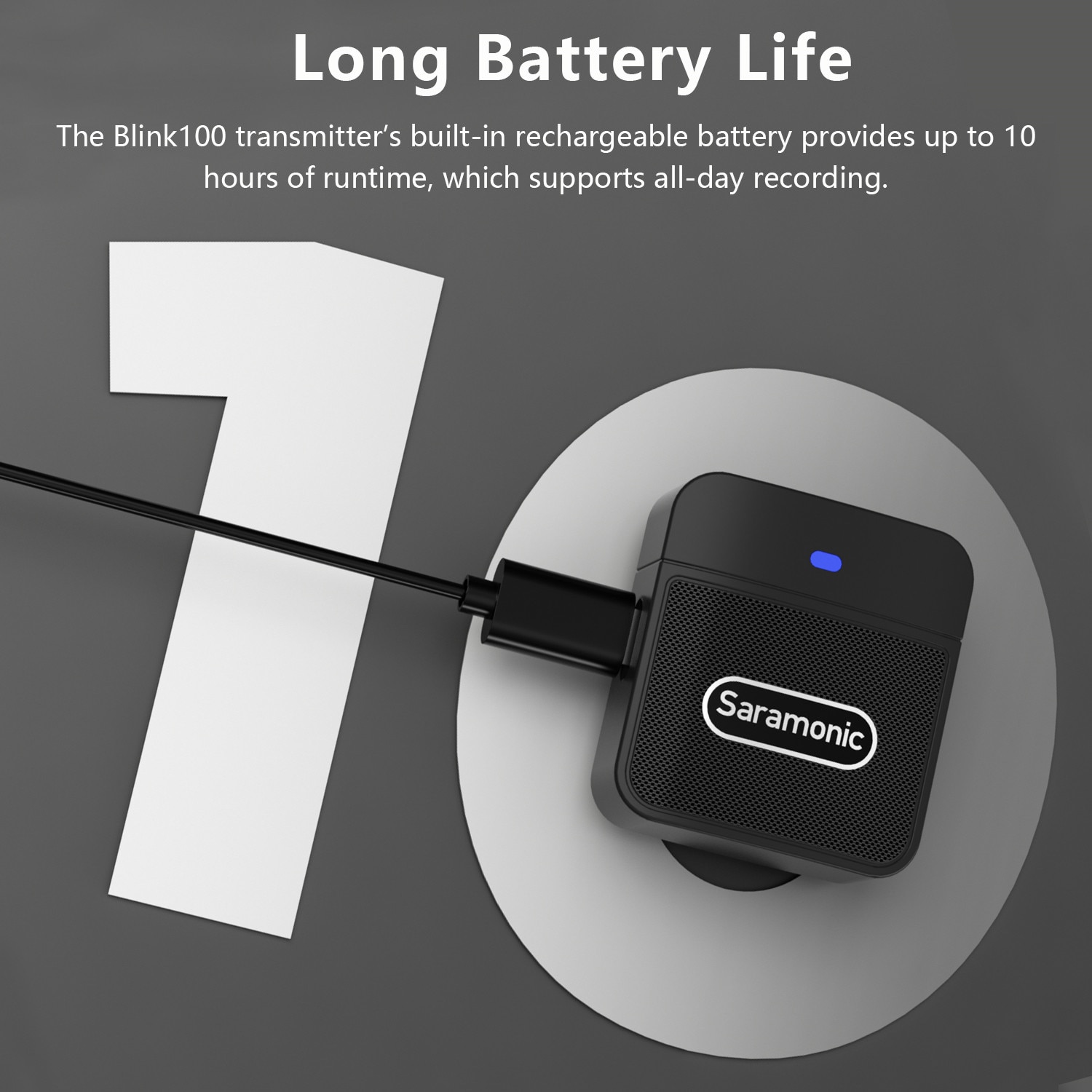 До 10-ч записи и USB-C порт зарядки (5 В постоянного тока)