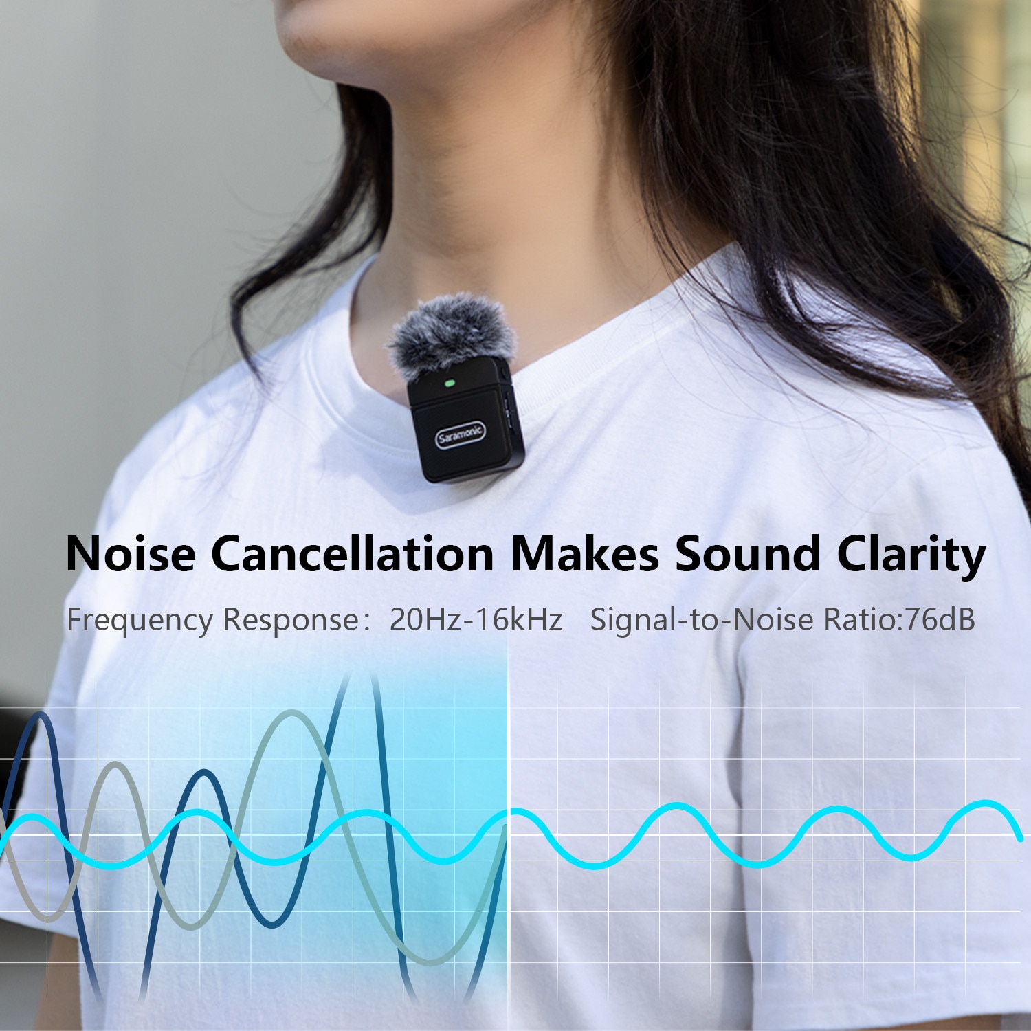 Благодаря цифровой передаче 2,4 ГГц система Blink100 предлагает стабильный и впечатляющий диапазон прямой видимости 50 м, обеспечивая непревзойденное качество звука для создателей контента. Нажмите одновременно кнопки «+» и «-», чтобы включить/выключить функцию шумоподавления. При переключении в режим шумоподавления статический зеленый индикатор системы Blink100 удаляет Окружающий шум и обеспечивает чистый звук.