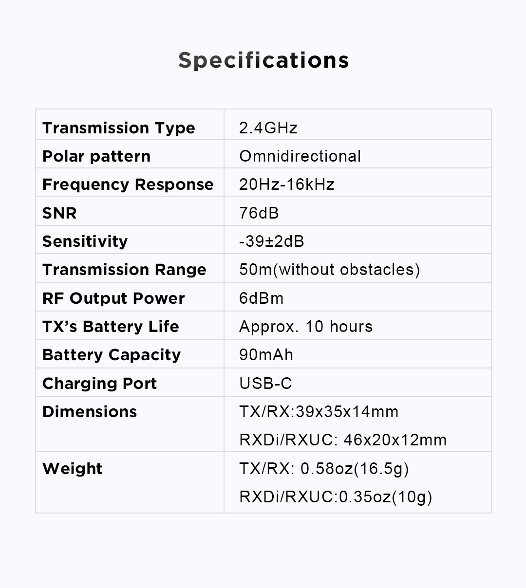 RX Weight RX:0.58oz(16.5g)