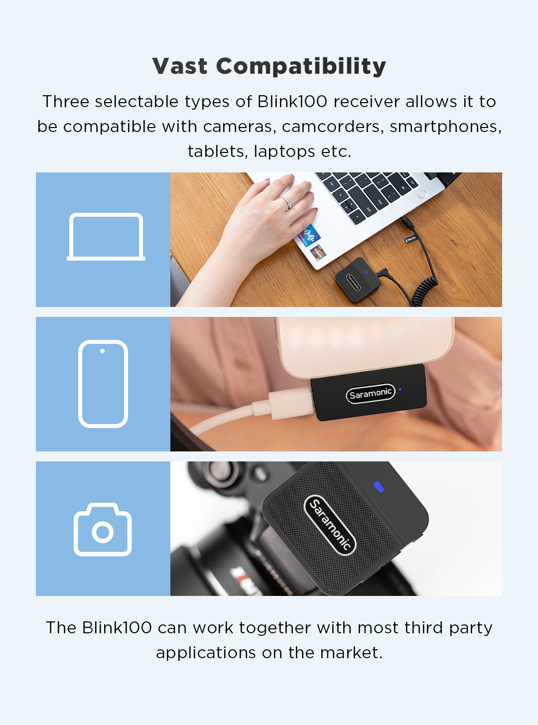 BLINK100 B2 Compatible with Smartphones, Tablets, DSLR Cameras, Camcorders