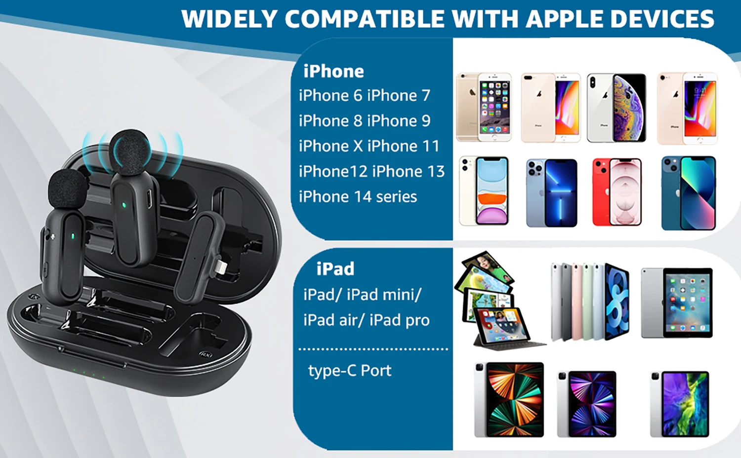 Беспроводной микрофон для iPhone iPad Type-C с зарядным чехлом, 2 пакета, 3 беспроводных петличный микрофона с шумоподавлением для записи видео, интервью, видеоблога, YouTube