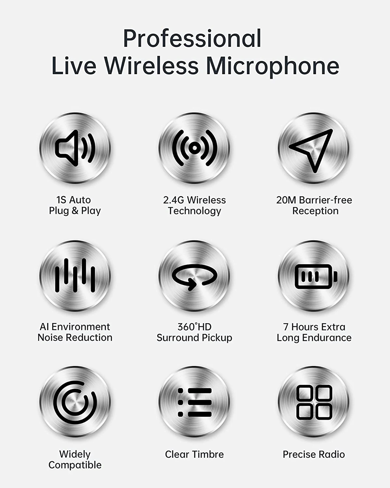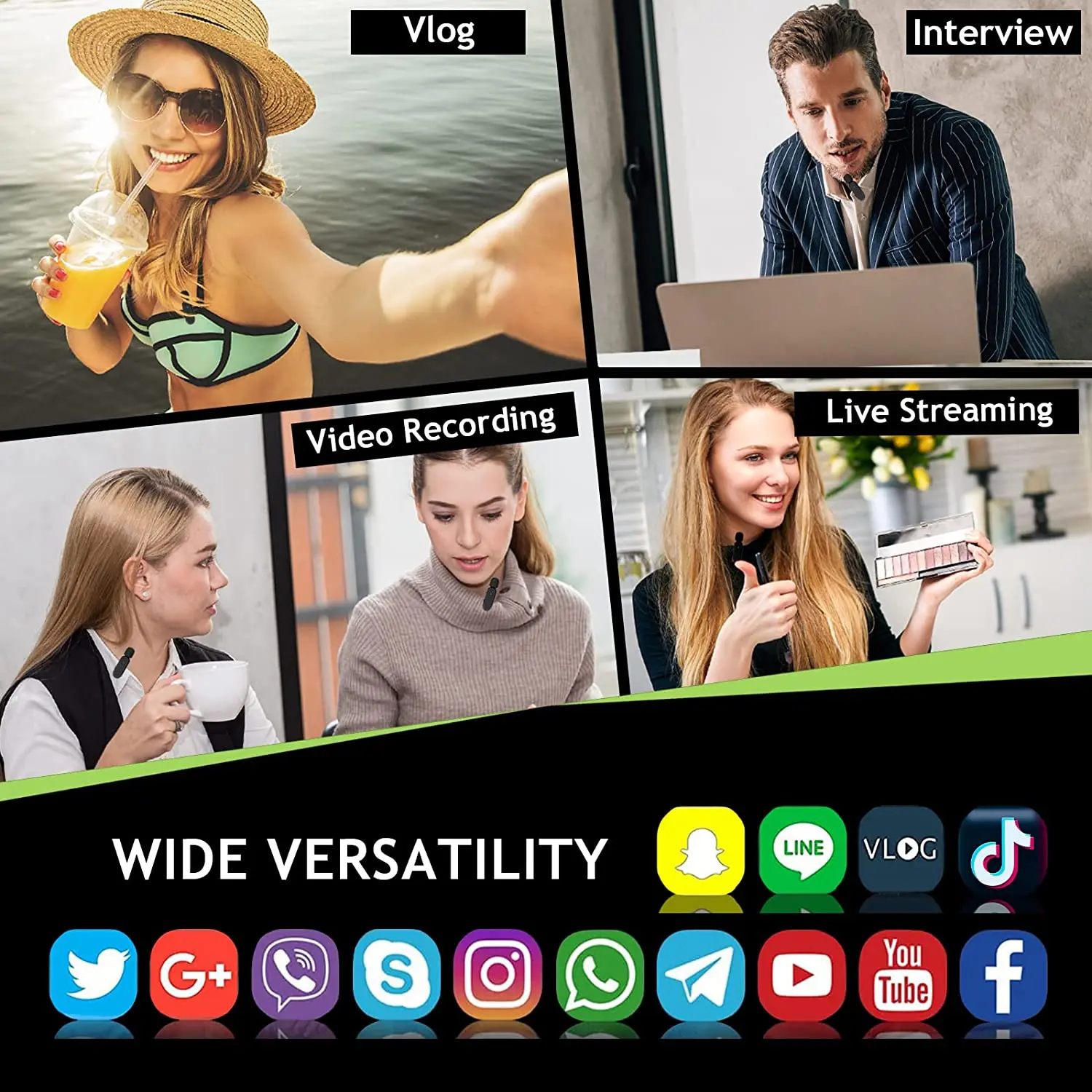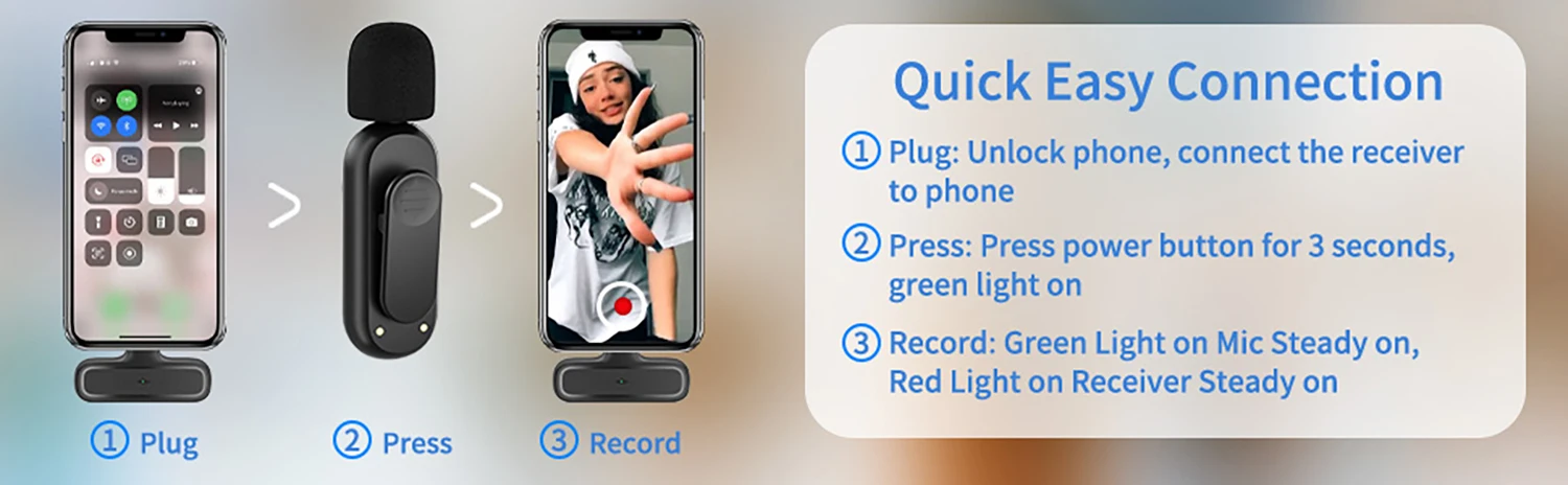 【Простое автоматическое подключение】 Адаптер/дополнительное приложение/Bluetooth не требуется, всего 2 шага для подключения. Шаг 1: Подключите приемник к устройствам; Шаг 2: Включите микрофоны. Попрощайтесь с грязными кабелями, и на воротнике можно закрепить беспроводные петличный микрофон с отворотом, чтобы освободить руки для записи аудио-видео.