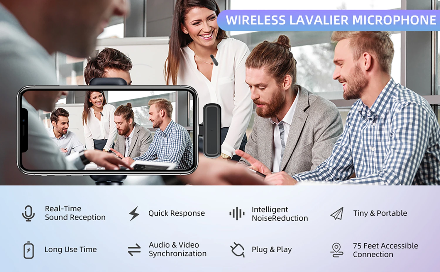 【Передача на большие расстояния и Автоматическая синхронизация в реальном време】 Модернизированная технология беспроводной передачи с микрофона, 80-футовая стабильная передача аудиосигнала без кабеля и резких шумов. Технология автоматической синхронизации в реальном времени (сверхнизкая задержка 0001 с) значительно сокращает время пост-редактирования видео, поддерживая лучший опыт просмотра видео.
