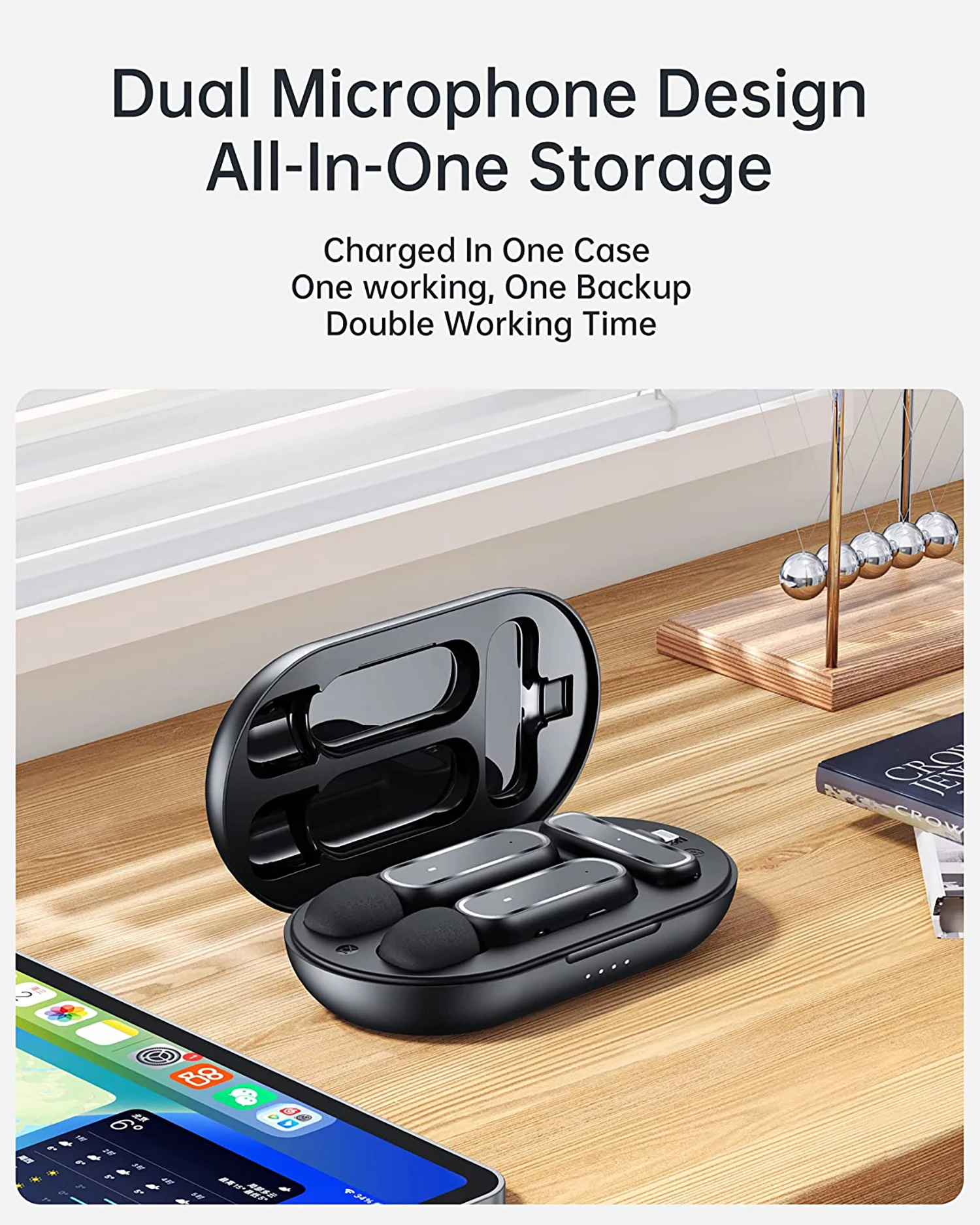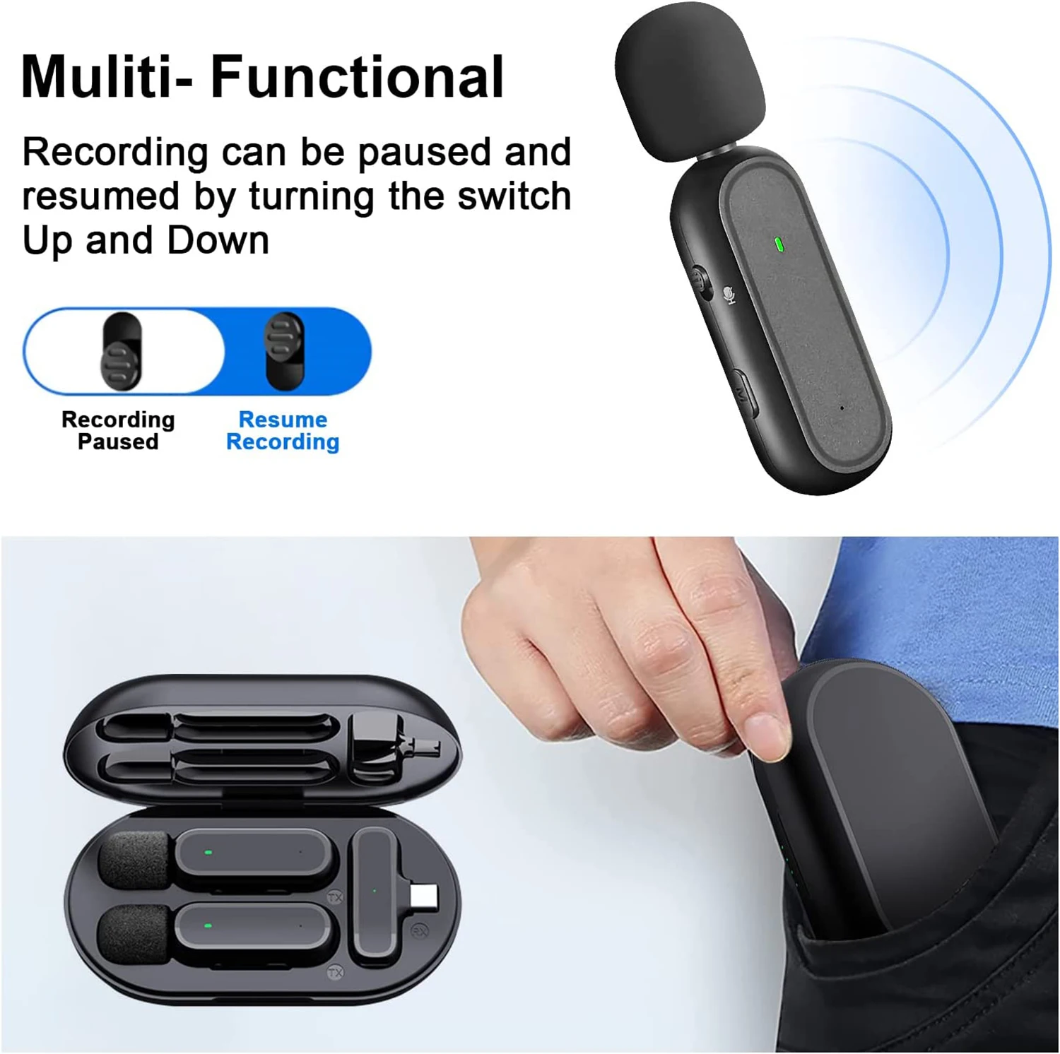 【Модернизированный дизайн для зарядного футляра】 Приемник питается от вашего устройства (Может заряжаться одновременно), встроенные аккумуляторные батареи передатчика работают до 6 часов. Батарейный отсек 300 мАч добавляет в 5 раз больше энергии, до 30 часов. Зарядный Футляр позволяет хранить и переносить. Его компактный размер удобен для создания видео в любом месте и в любое время.