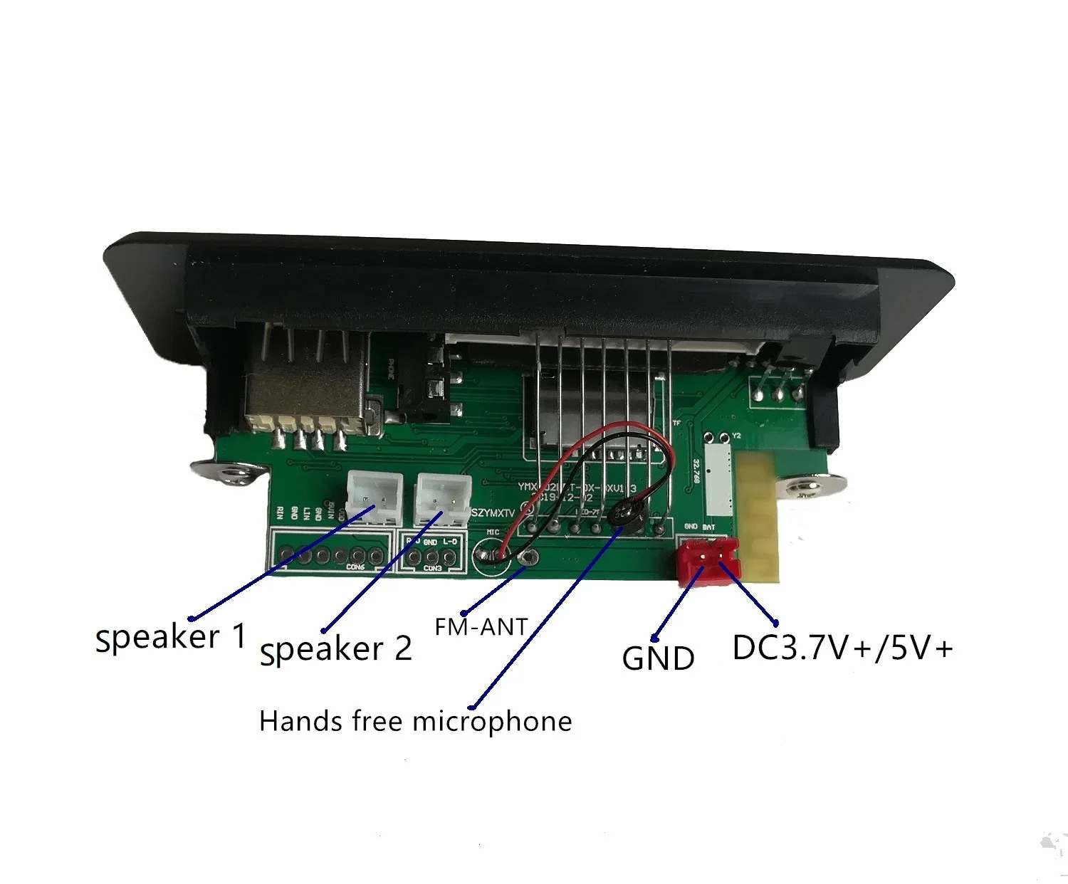 Напряжение: dc3.7/5 В, ток: 1.5A, напряжение не может быть выше 5 В; С 2*3 Вт усилитель мощности (подключен к 4 Ω 3 Вт + 3 Вт);