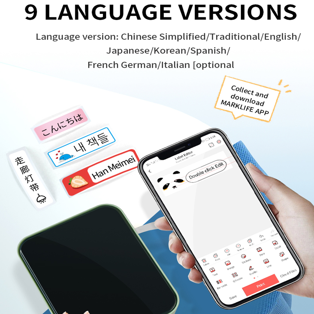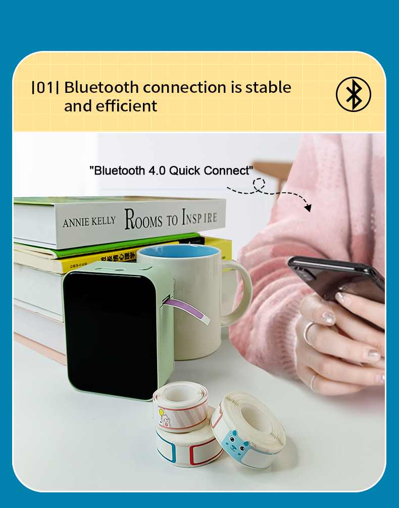 Bluetooth: Беспроводная Печать вашей этикетировочной машины через Bluetooth. Загрузите приложение и отредактируйте его по телефону, вы можете использовать его в офисе, дома или где угодно.
