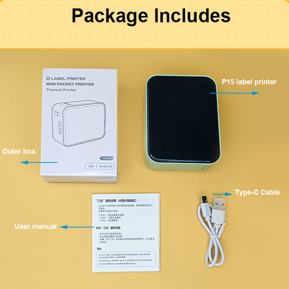 100% оригинал принтер этикеток P15 беспроводной Bluetooth термопринтер бесчернильная печать наклеек Мини карманный принтер офисный домашний лейбл использование с розничной коробкой