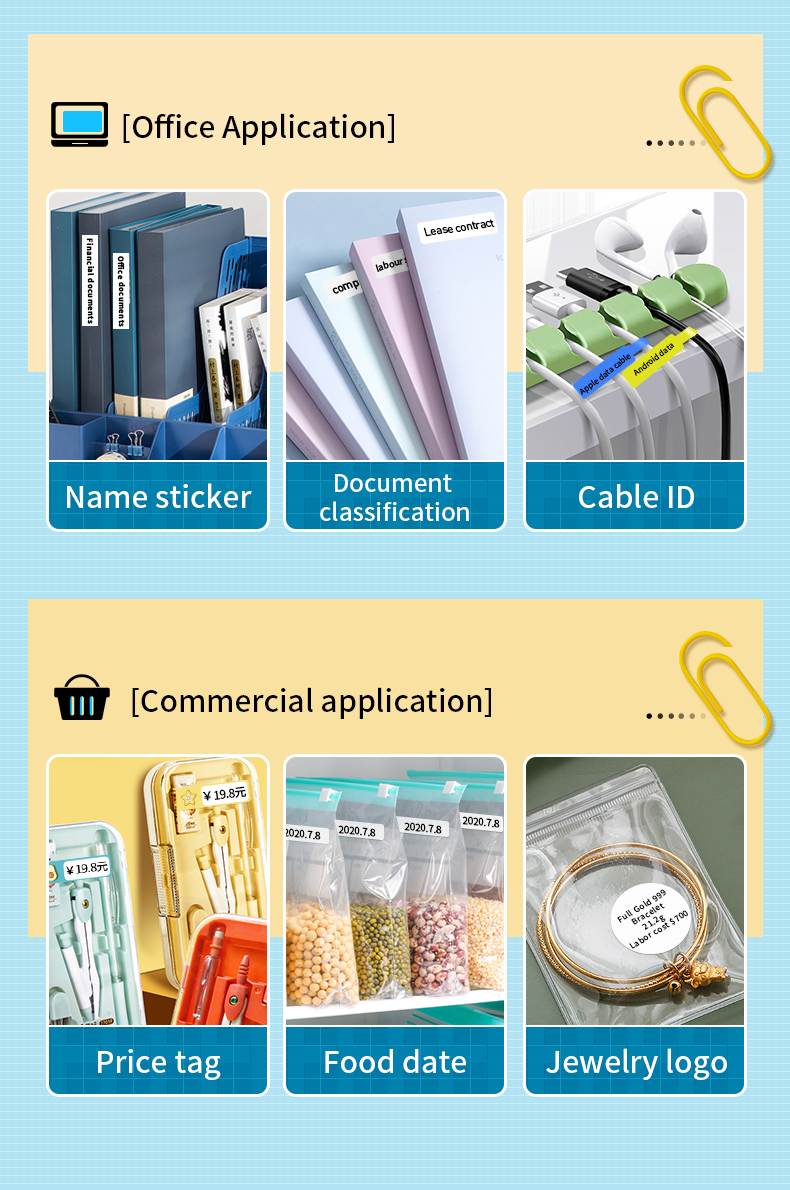 Портативный и удобный: компактный и легкий дизайн этого портативного принтера этикеток позволяет легко носить с собой и использовать его в любое время и в любом месте, а аккумуляторная батарея обеспечивает длительную мощность печати.