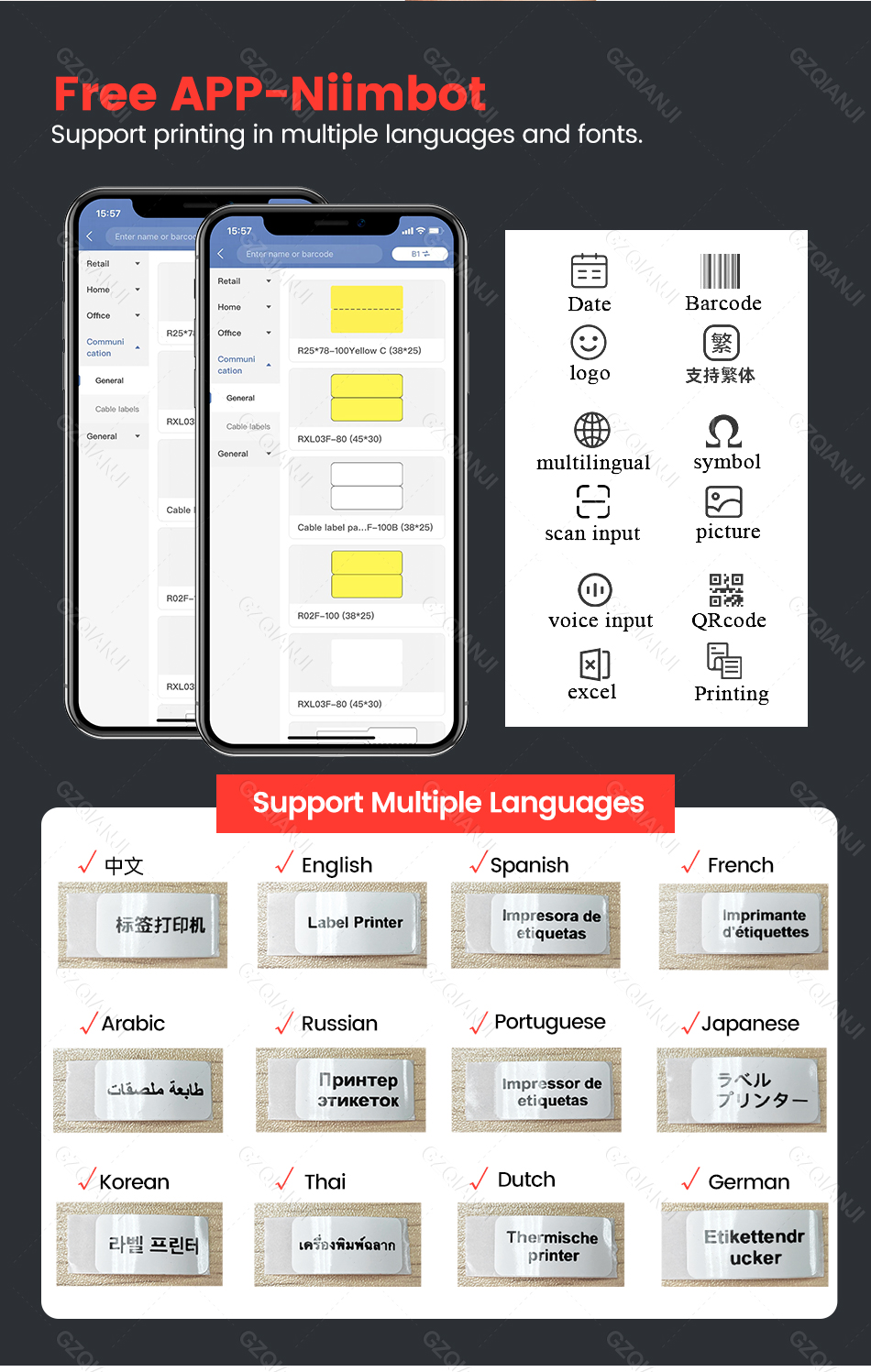 Поддерживает все основные форматы этикеток: цена, дата, размер, вес, название и так далее.