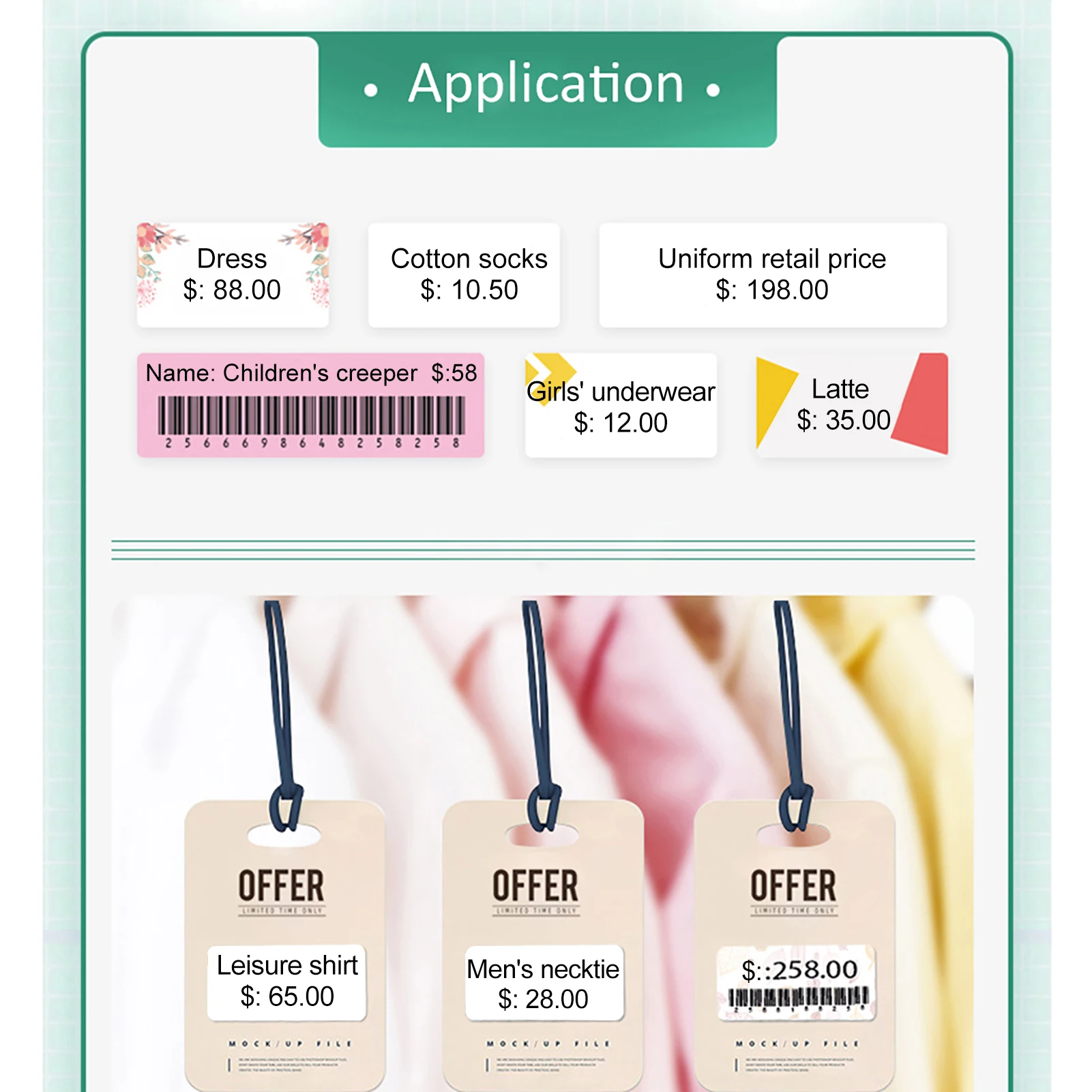 Широко используется в домашнем хранении, офисе, супермаркете для печати этикеток, цены, веса, даты, имени и т. Д.