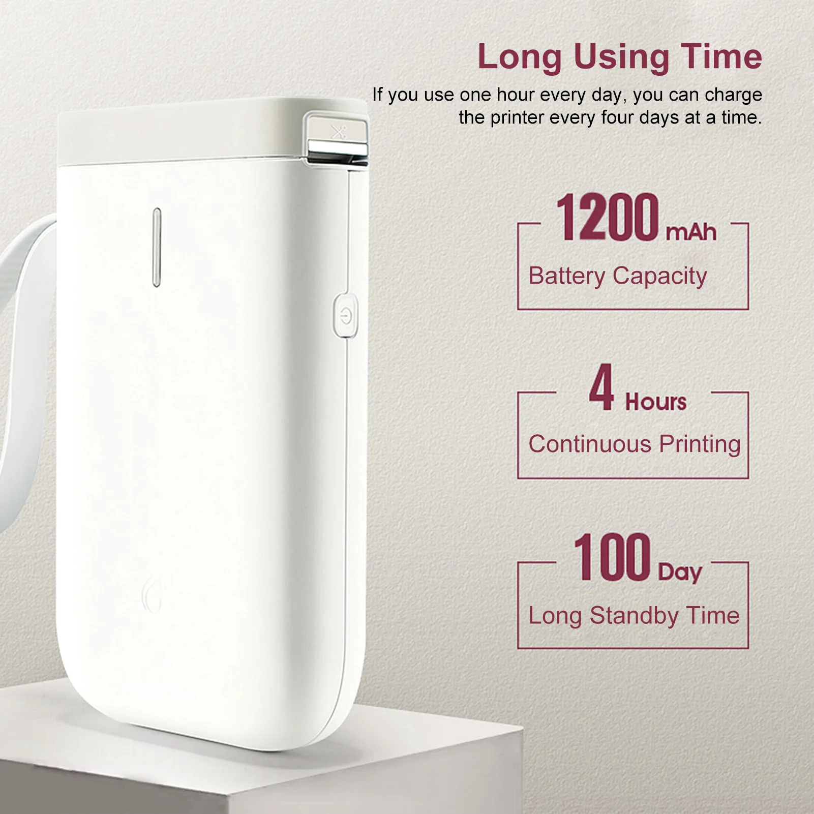 Встроенный литиевый аккумулятор большой емкости 1200 мАч для термопечати, непрерывное рабочее время до 4 часов.
