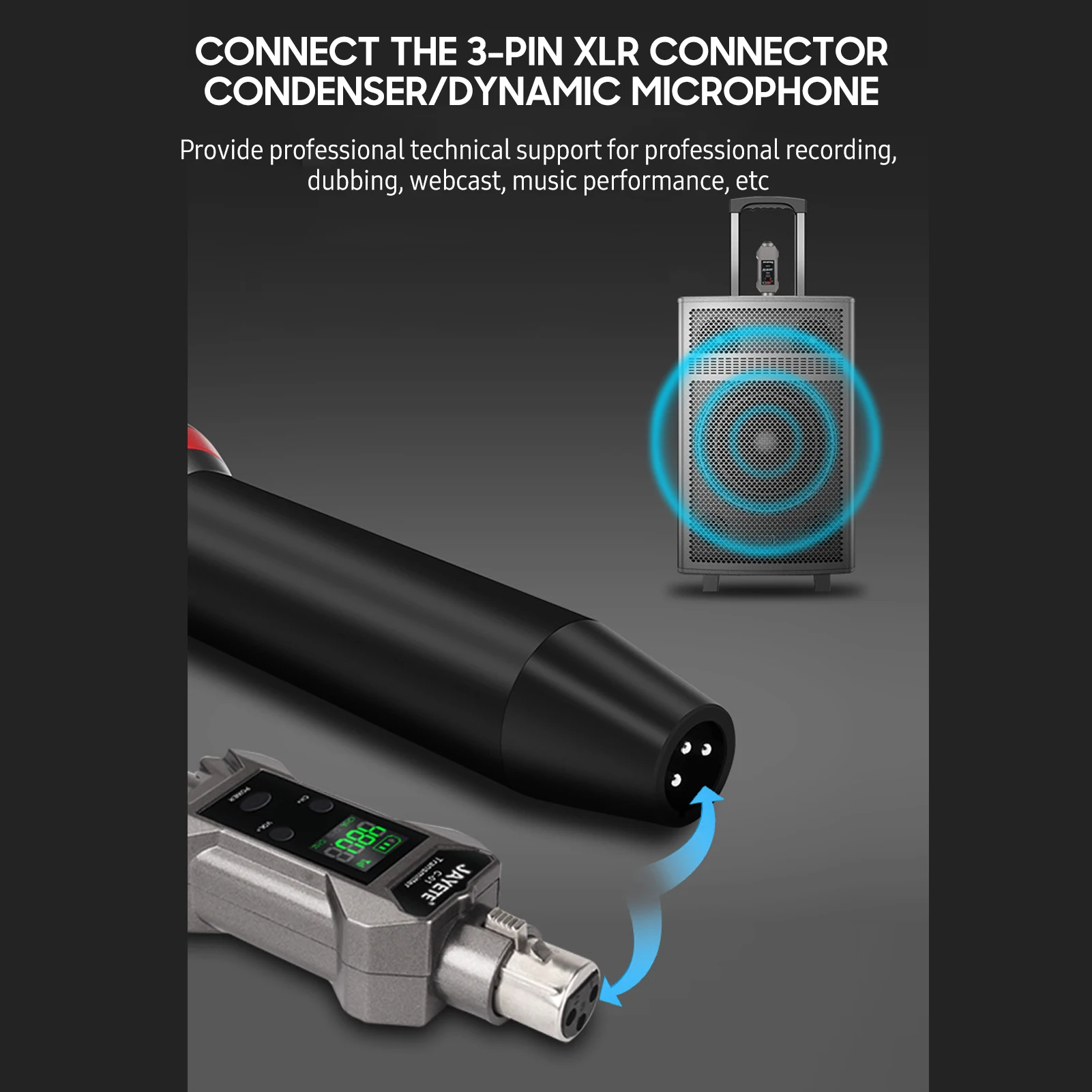 Оснащен штекером от XLR до 6,35 для приемника: его можно использовать в динамике, микшере, усилителе, гитаре и другом звуковом оборудовании.