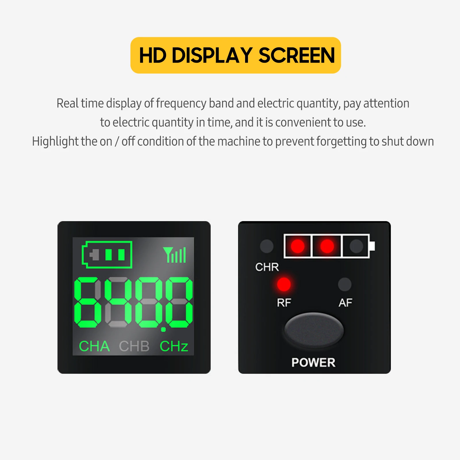 Разработан с уникальным идентификационным кодом: вы можете подключить микрофонный передатчик и приемник, используя идентификационный код, если частота прерывается по какой-либо причине.