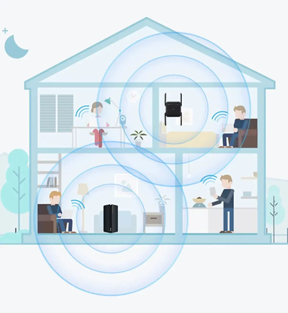 • Усилитель дальнего действия :Усильте и Расширьте сигнал Wi-Fi до 1200 м, охватывая большие площади и обеспечивая лучшую связь.