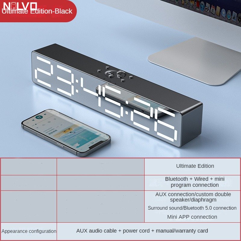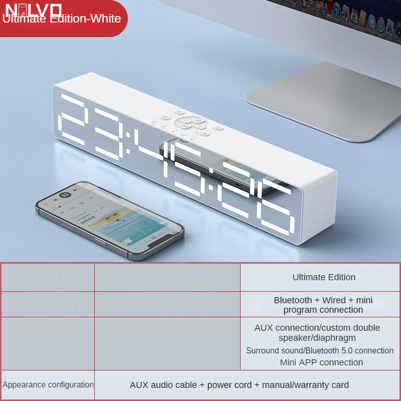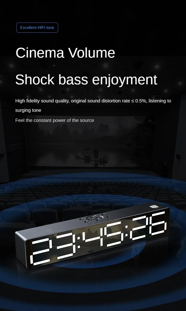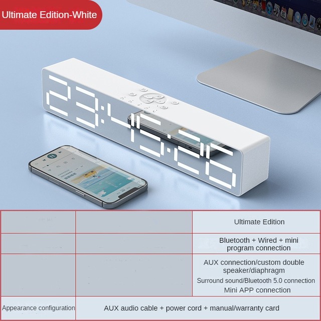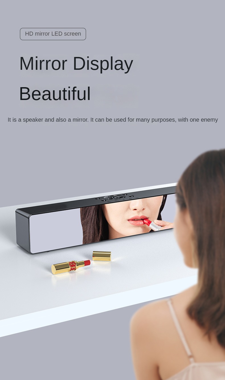 Усовершенствованный дизайн зеркала, усовершенствованный дизайн зеркала, ночник, обновление басовой диафрагмы, установка приложения может управляться мобильным телефоном, регулировка освещения, 2 комплекта будильника, звуковой ящик, часы или будильник 360 ° 2 динамика объемного звука, полночастотный 40 мм внутренний Магнитный рупор, реалистичный оригинальный звук, Может обеспечить чистое качество звука Поддержка компьютера, воспроизведение Bluetooth мобильного телефона, голосовой вызов в режиме громкой связи, AUX, TF-карта, ночник