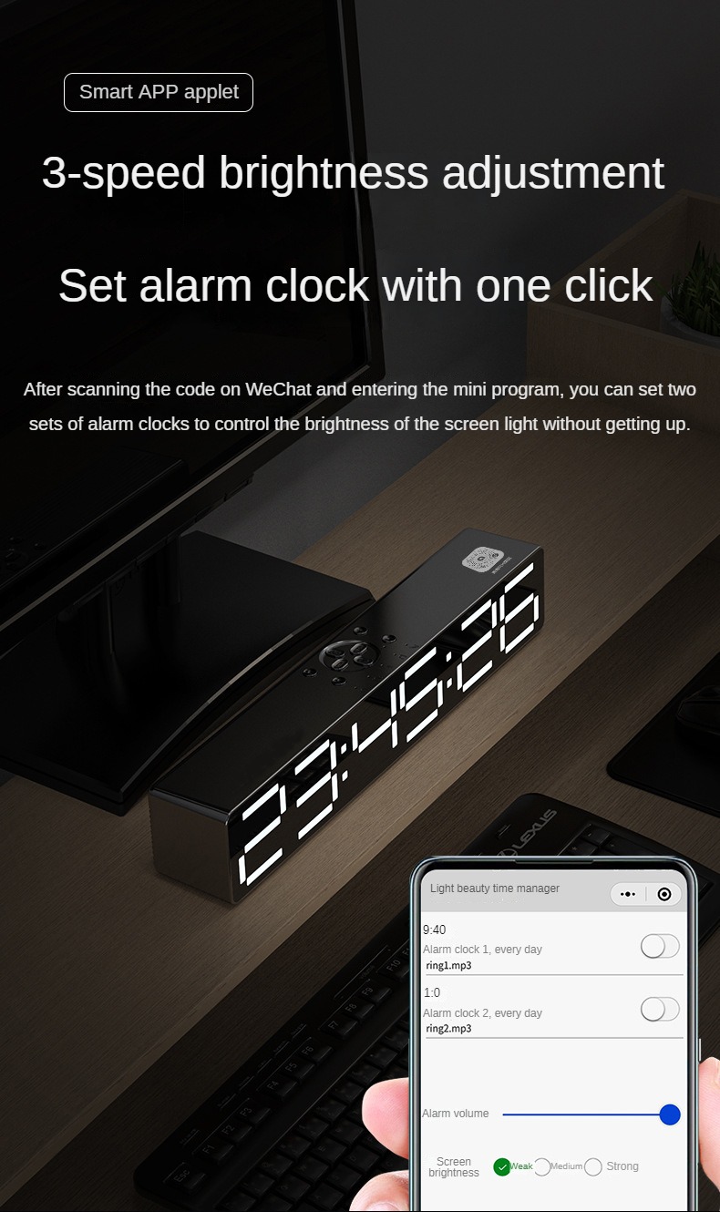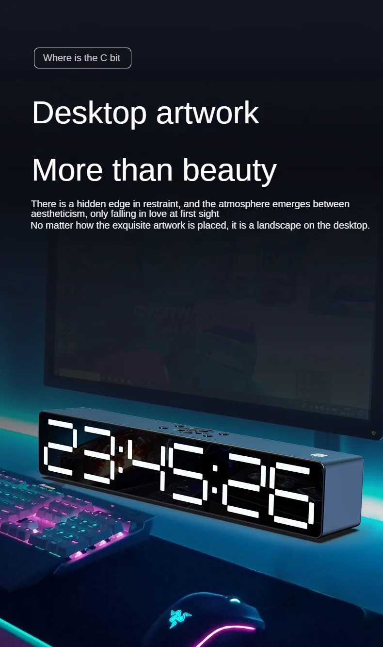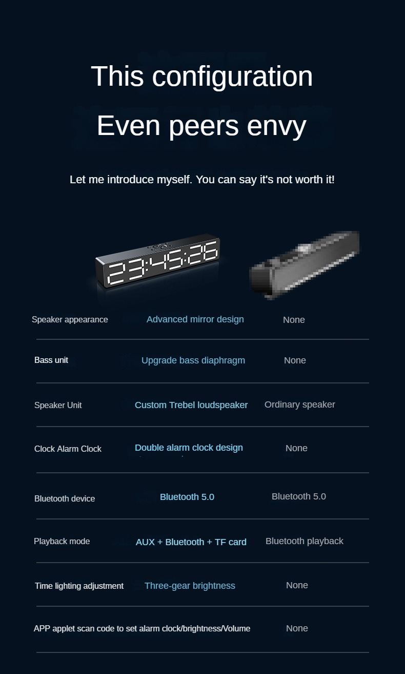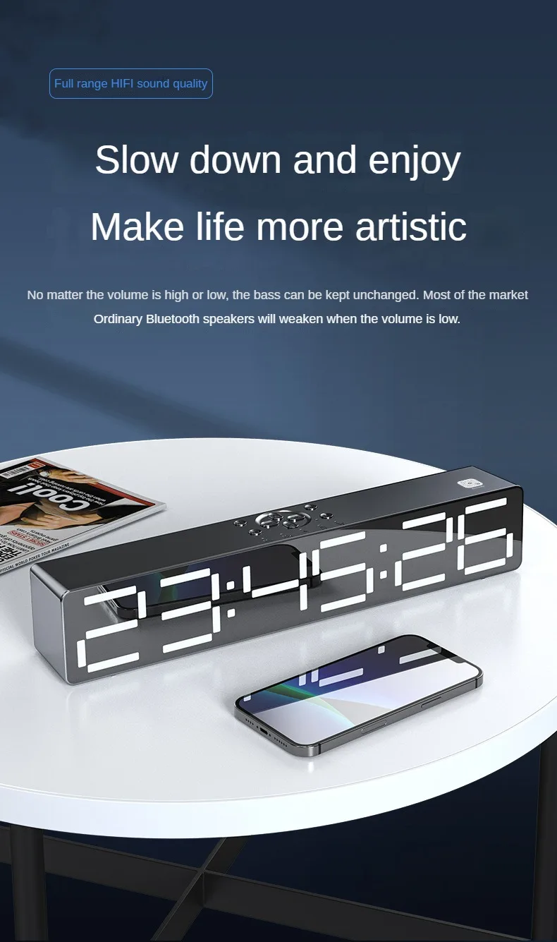 Усовершенствованный дизайн зеркала, усовершенствованный дизайн зеркала, ночник, обновление басовой диафрагмы, установка приложения может управляться мобильным телефоном, регулировка освещения, 2 комплекта будильника, звуковой ящик, часы или будильник 360 ° 2 динамика объемного звука, полночастотный 40 мм внутренний Магнитный рупор, реалистичный оригинальный звук, Может обеспечить чистое качество звука Поддержка компьютера, воспроизведение Bluetooth мобильного телефона, голосовой вызов в режиме громкой связи, AUX, TF-карта, ночник